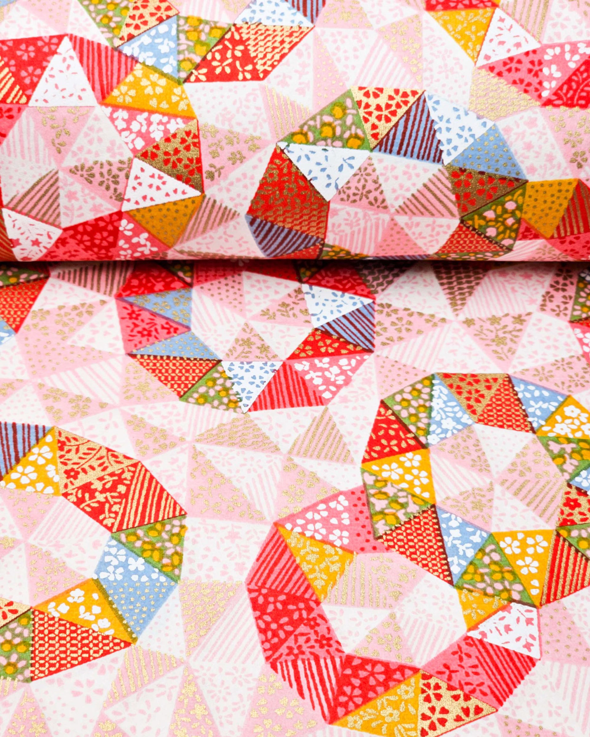 Main Colors: Pink, Blue, Green, Yellow, Metallic Gold
