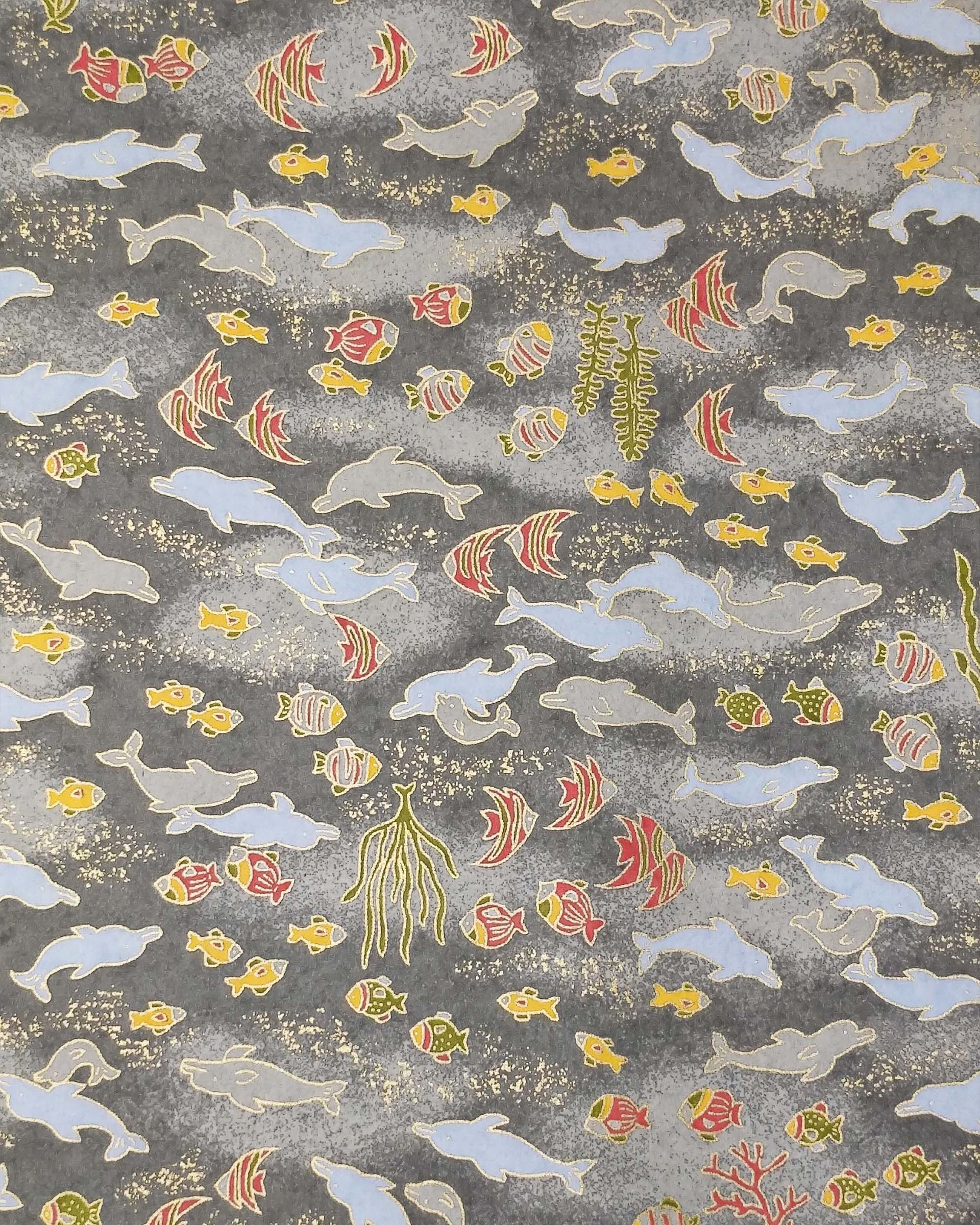 0851 Dolphins & Fishes on Gray