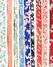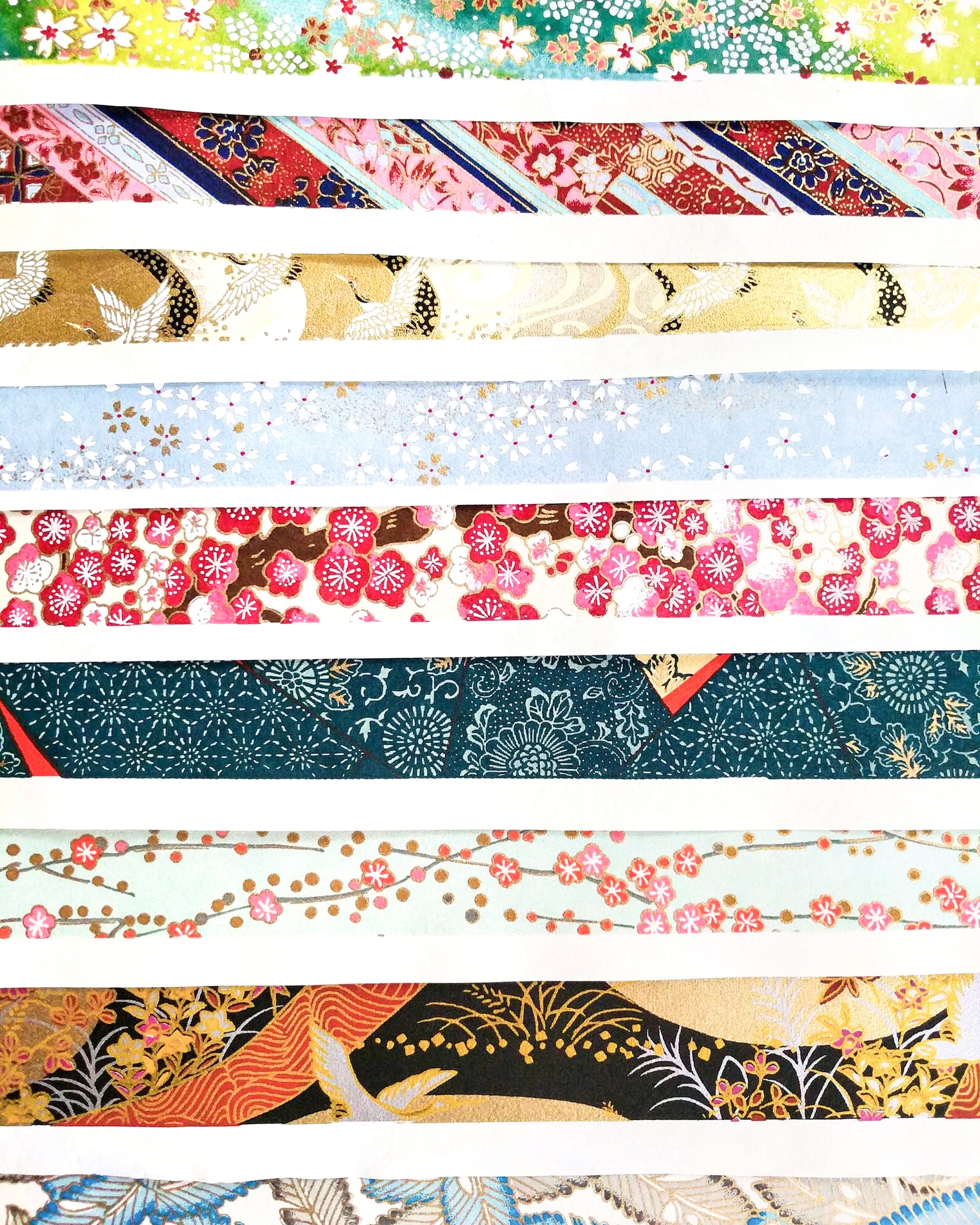 Scraps of chiyogami paper that are perfect for small projects ranging from making washi tapes to jewelry or beads.