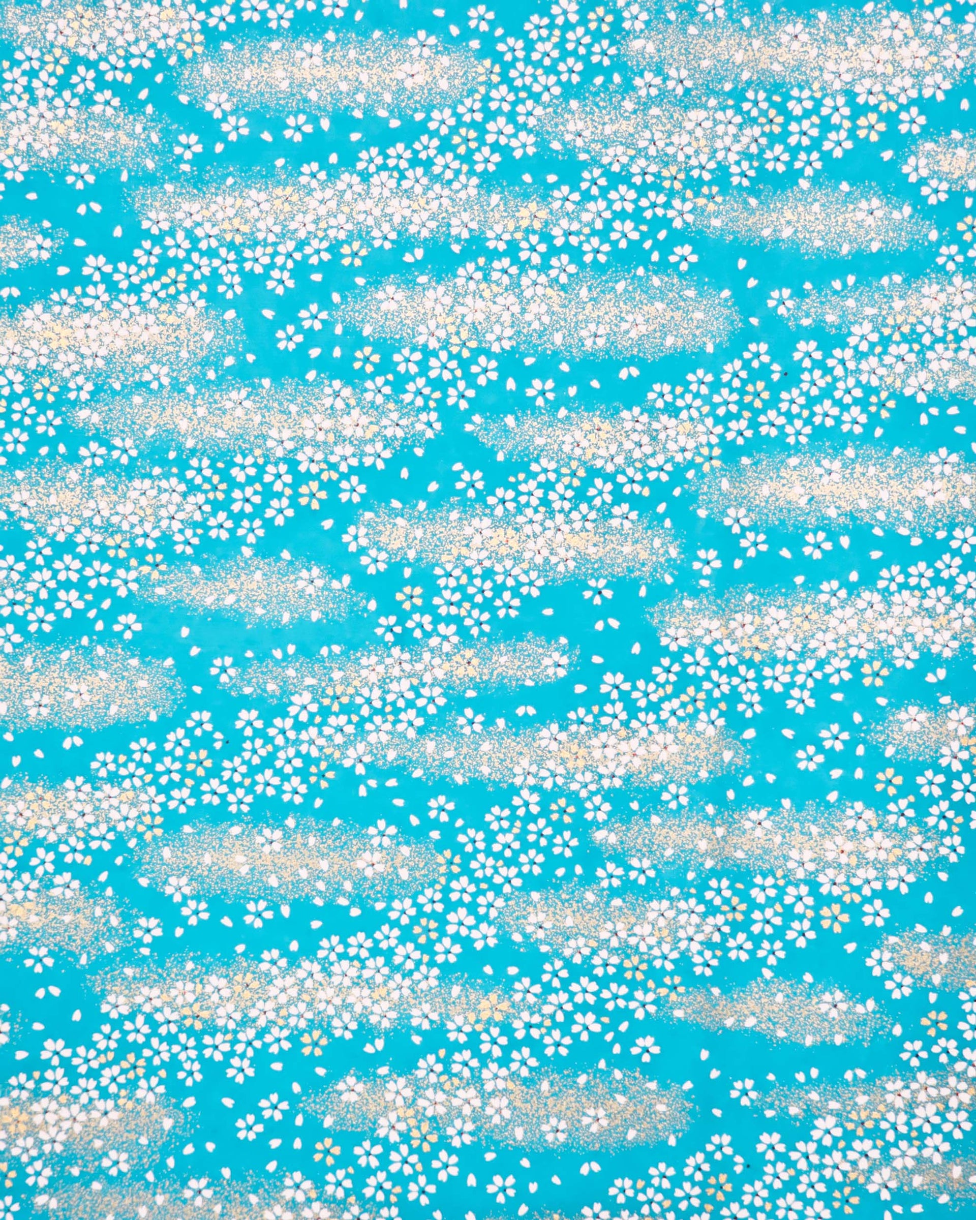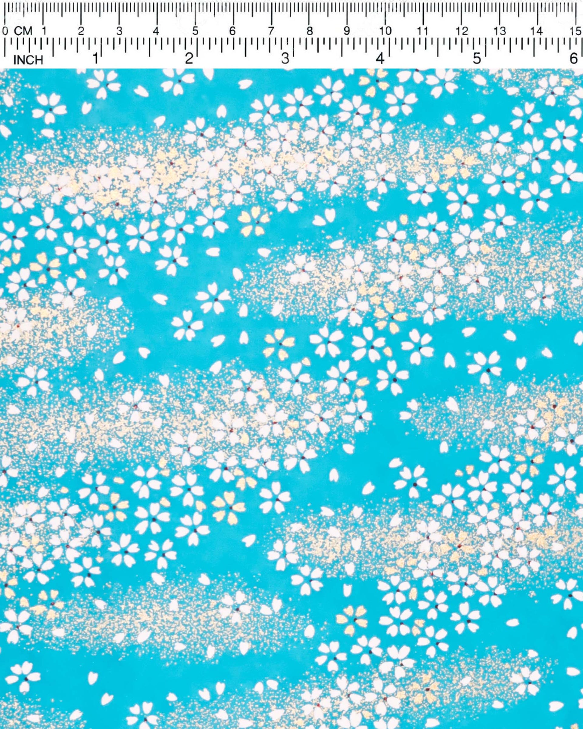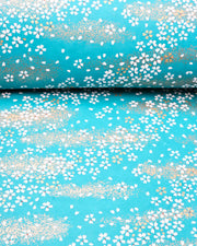 0249 White & Gold Cherry Blossoms on Turquoise Blue