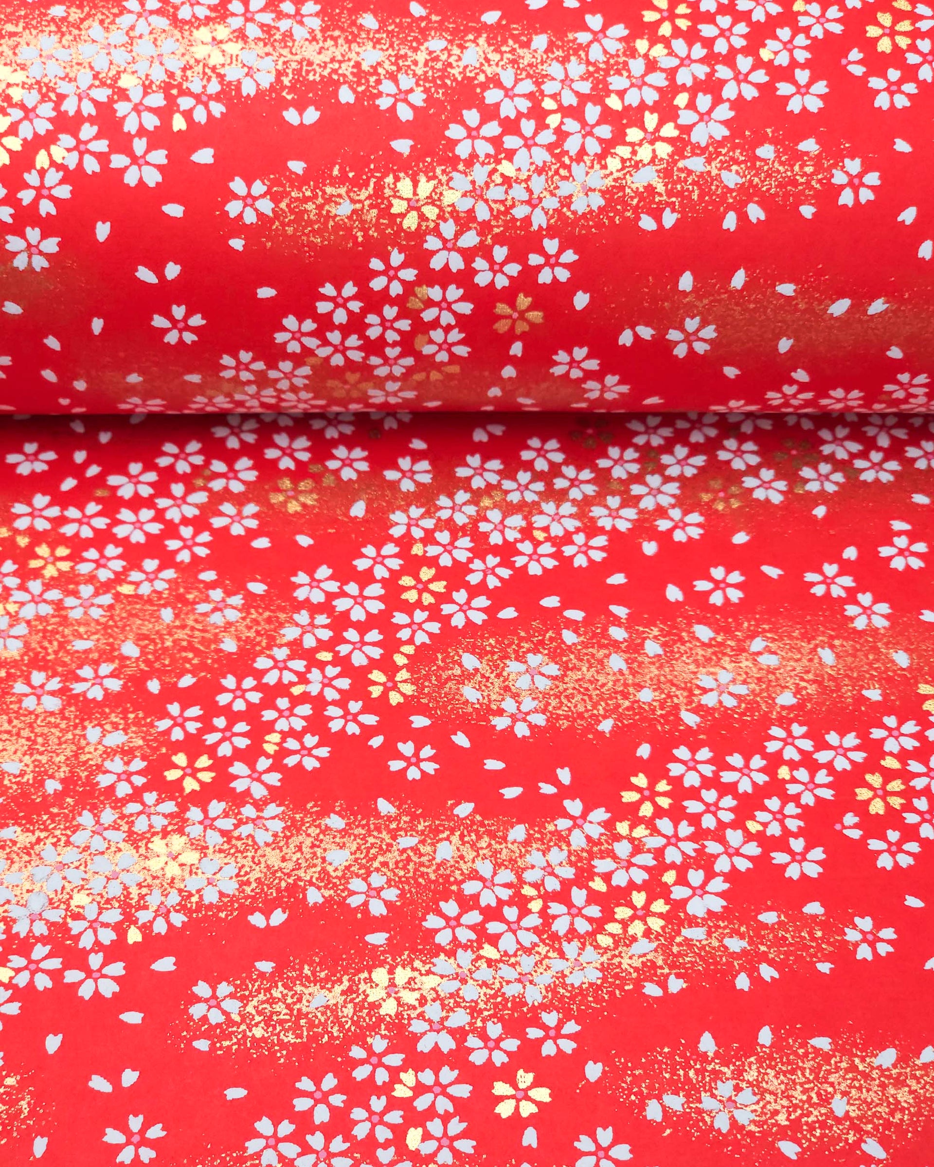 0436 White & Gold Cherry Blossoms on Red