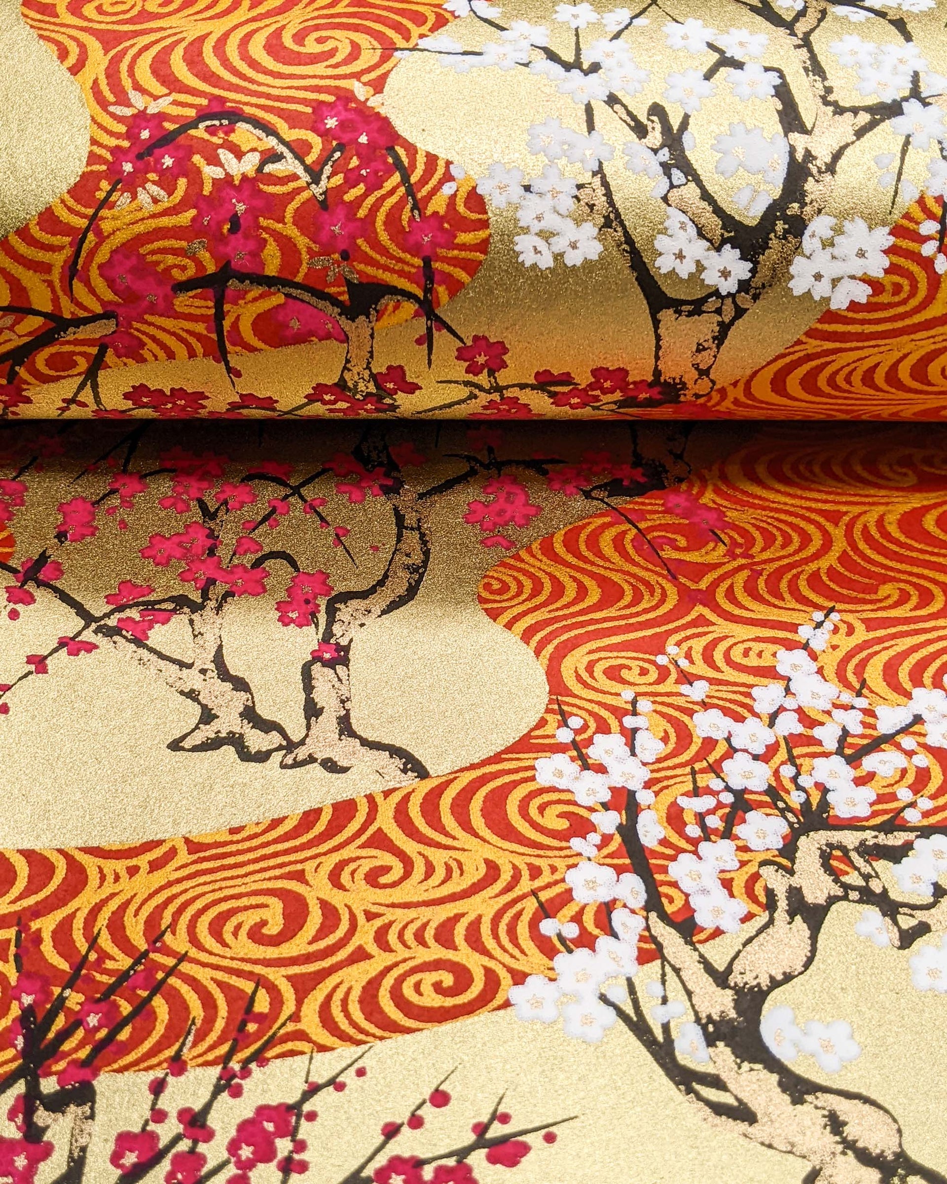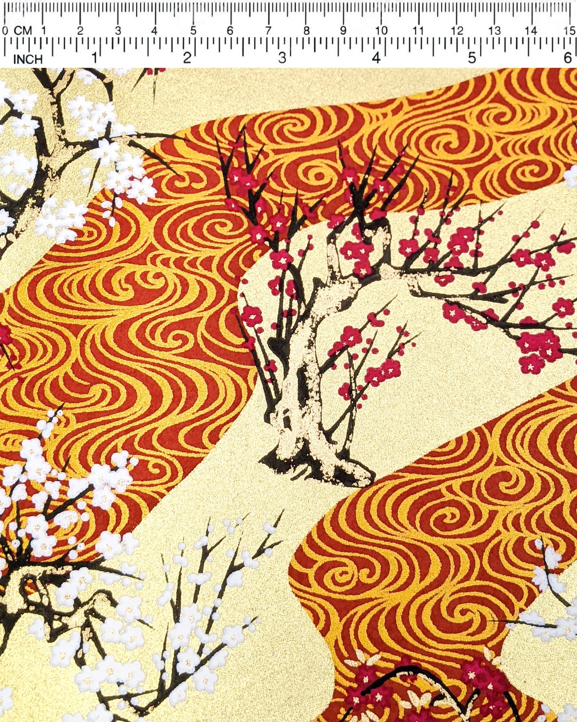 0432 Cherry & Plum Blossom Trees on Red Gold