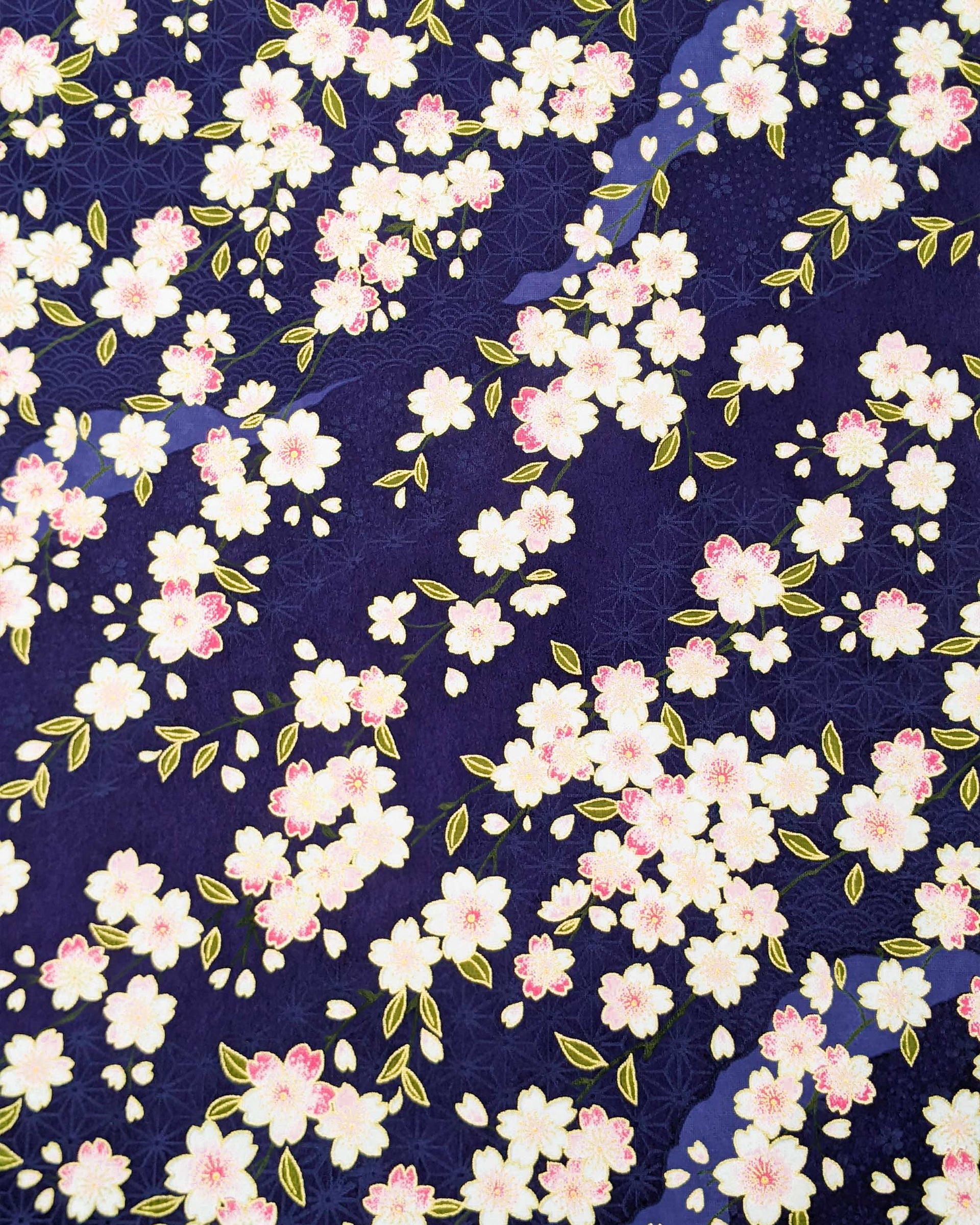 0854 Pink Cherry Blossoms on Blue