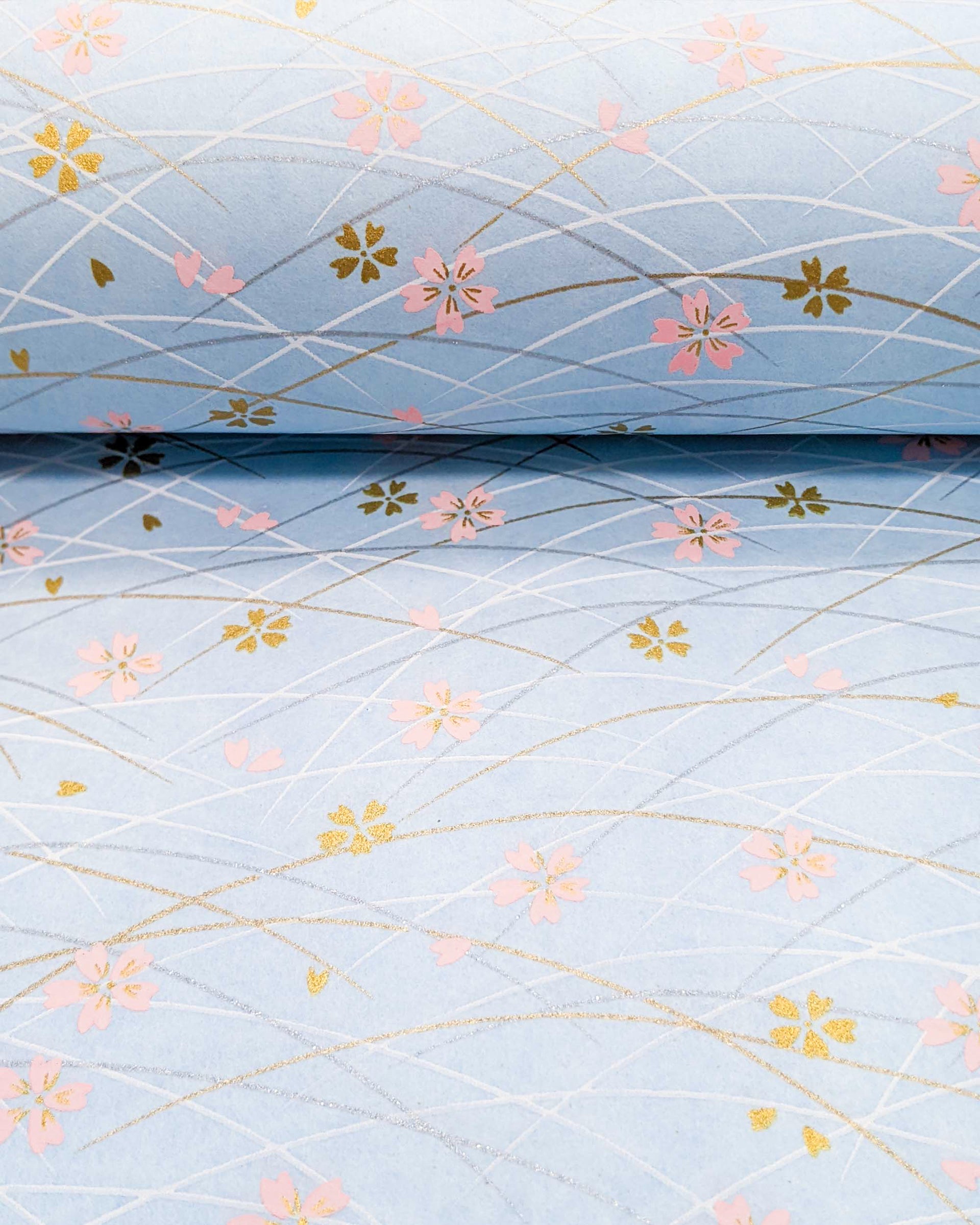 0868 Pink & Gold Cherry Blossoms on Light Blue