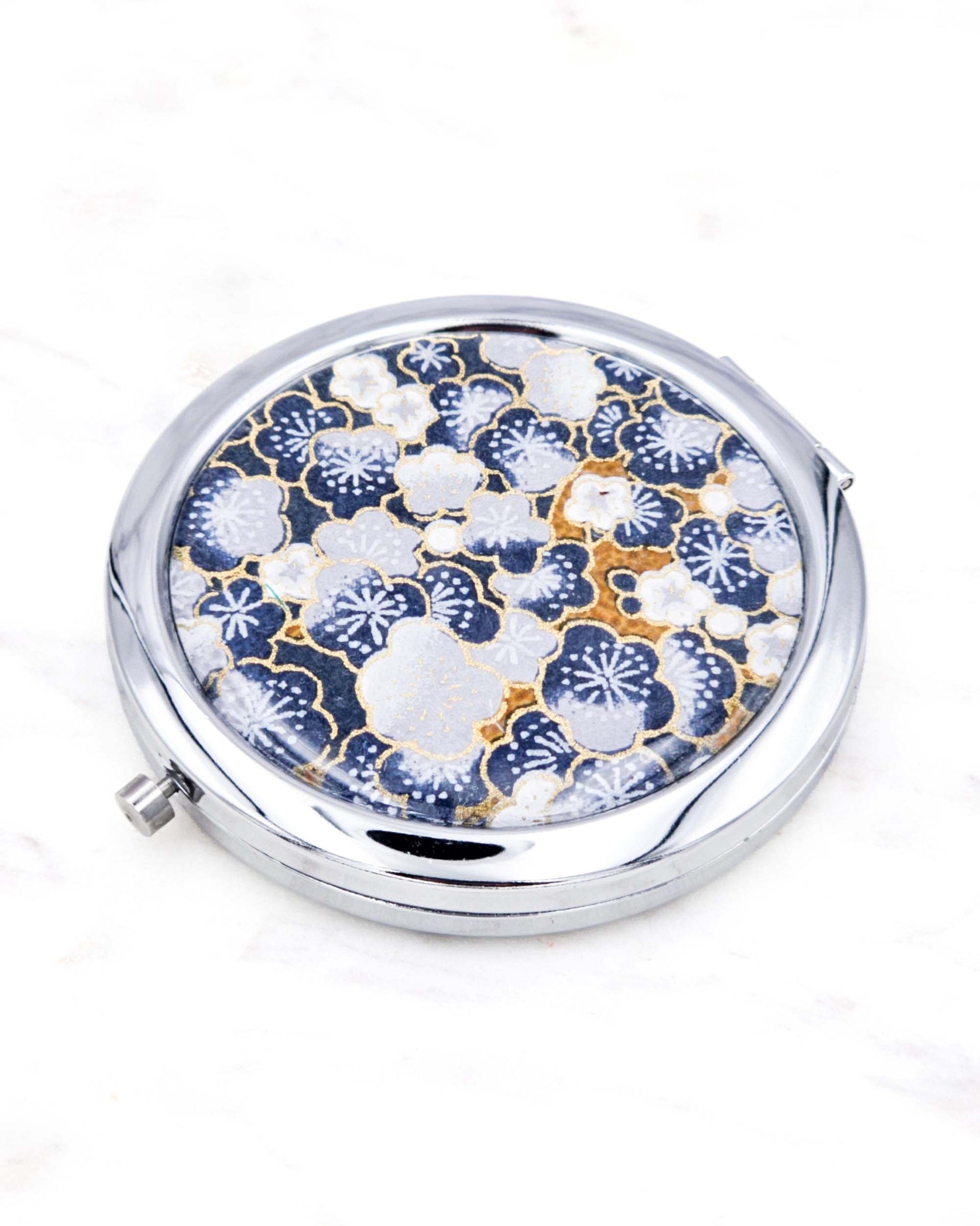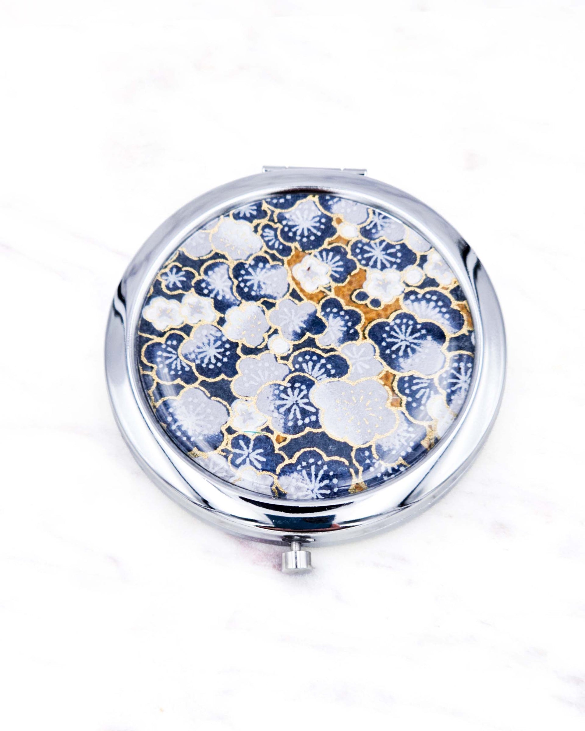 Compact Mirror - Blue Plum Blossom Tree on Navy Blue
