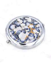 This silver folding double-sided compact mirror is decorated with beautiful authentic Japanese yuzen (chiyogami) paper. The design is protected under scratch resistant epoxy.