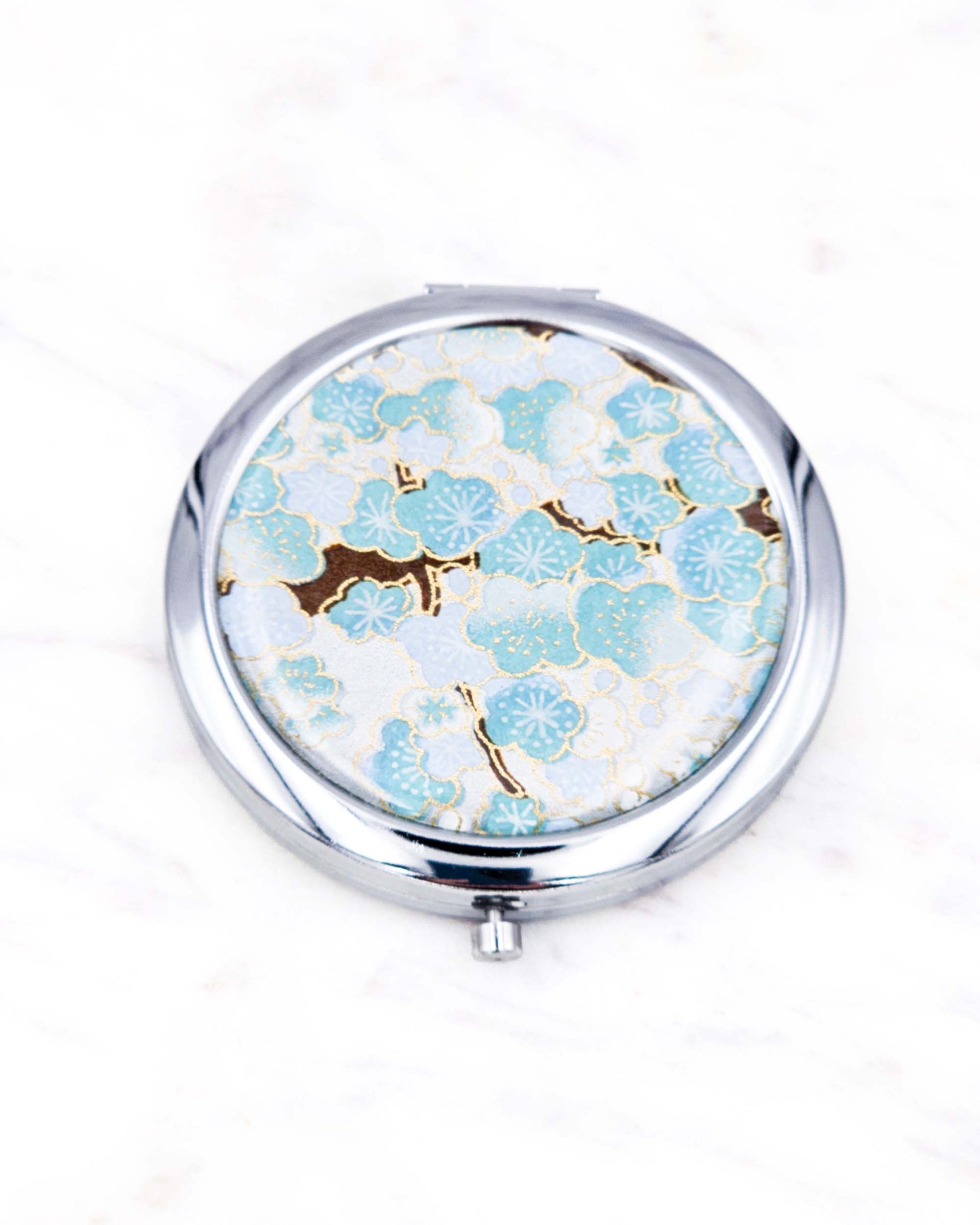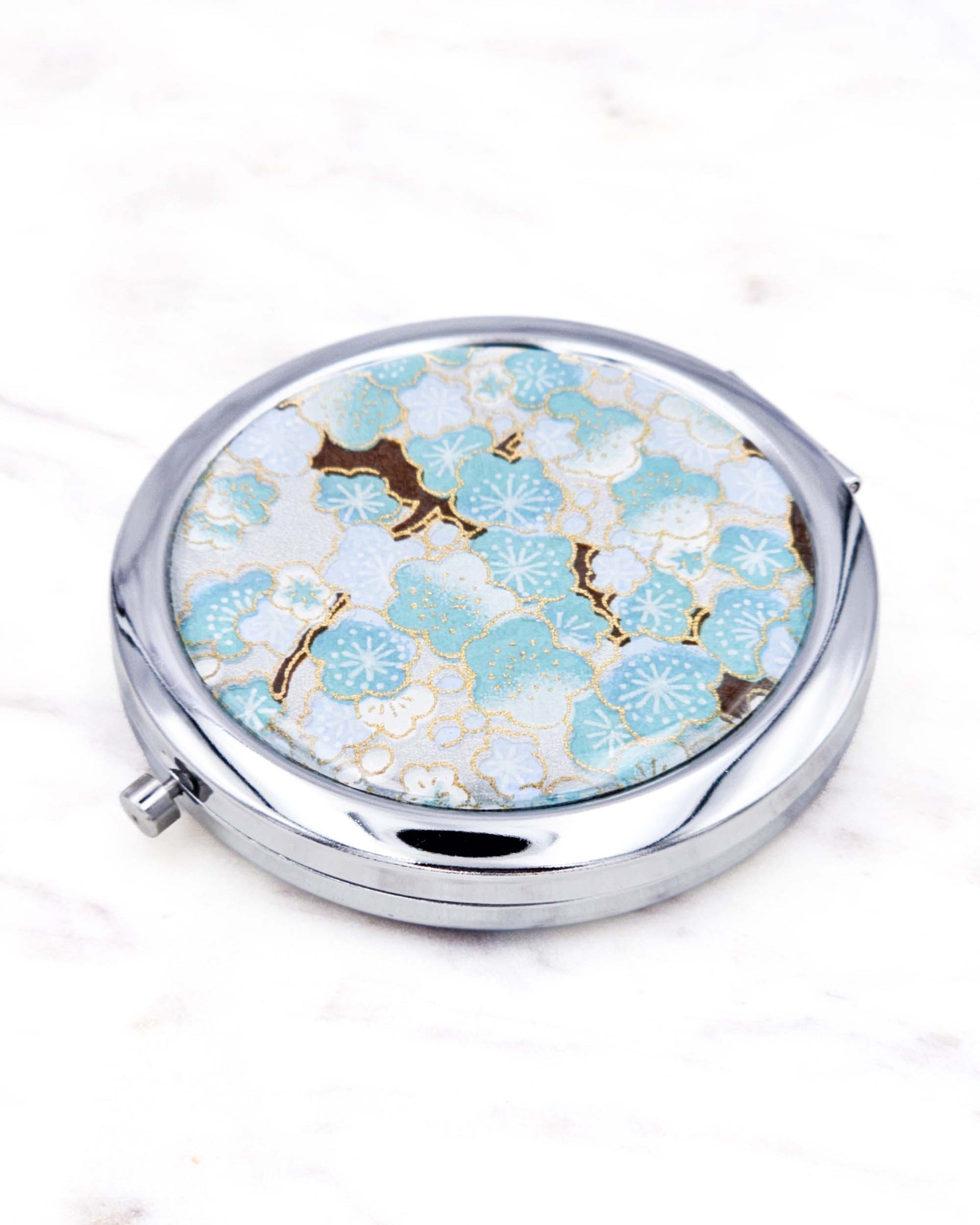 Compact Mirror - Turquoise Plum Blossom Tree on Silver