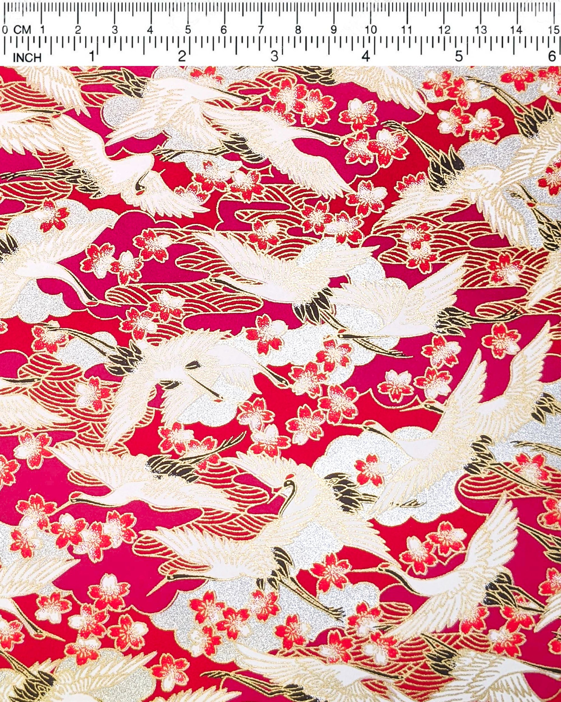 1025 Cranes & Cherry Blossoms on Red & Pink