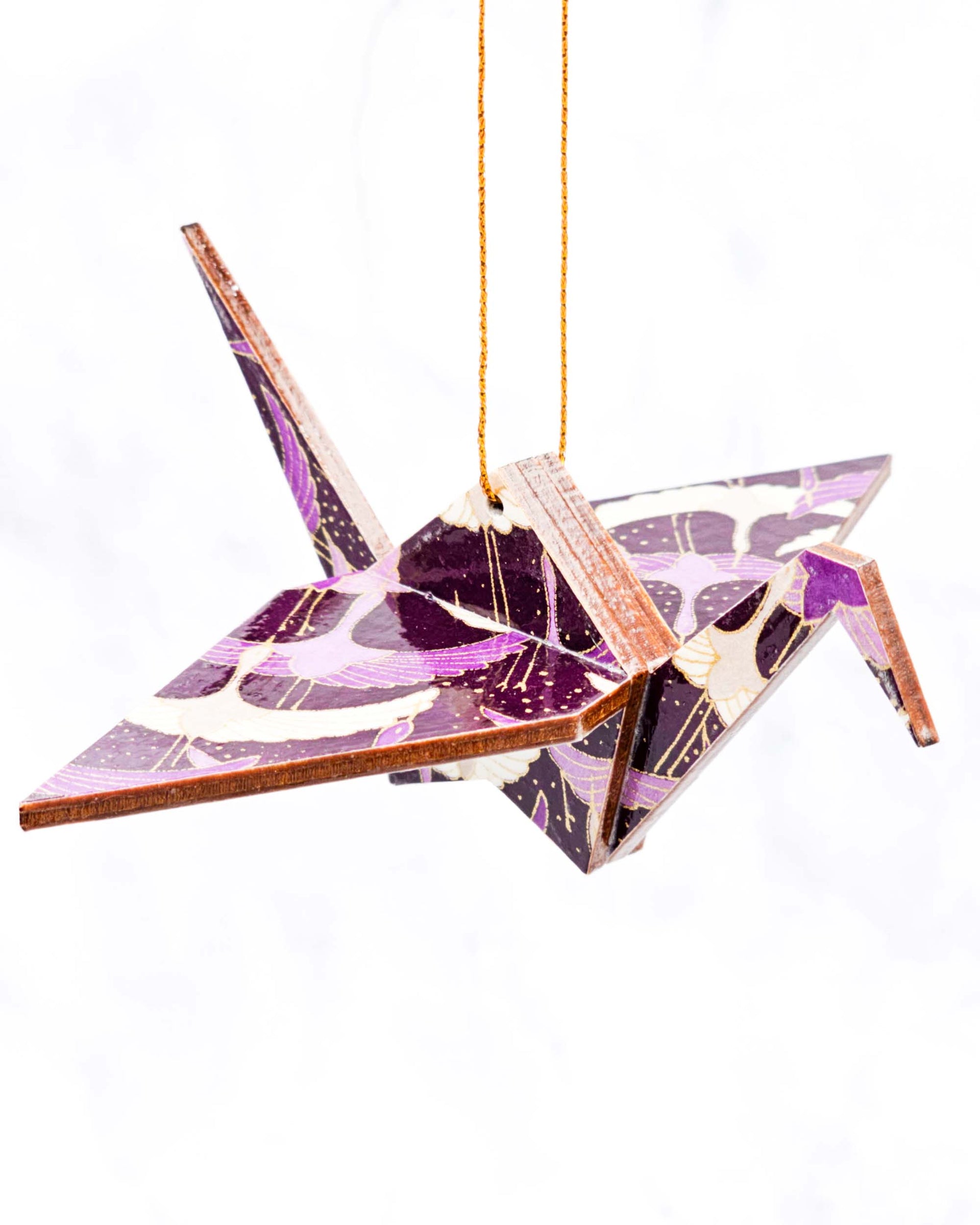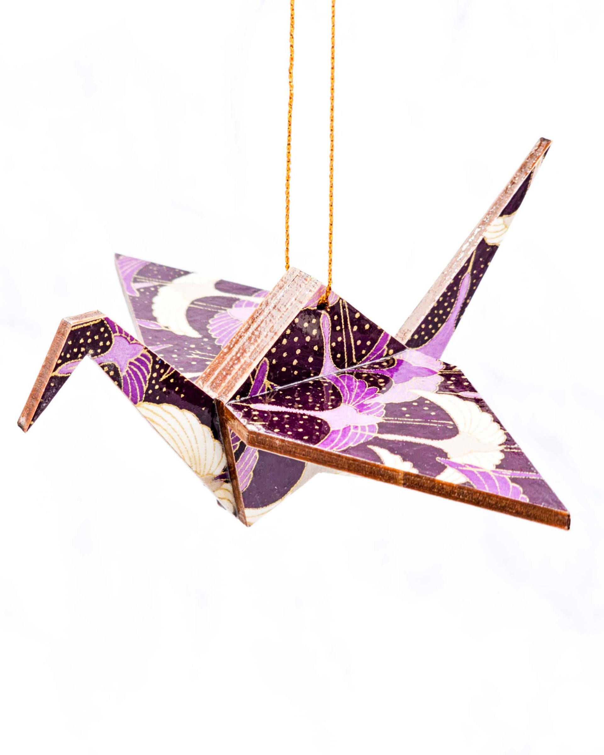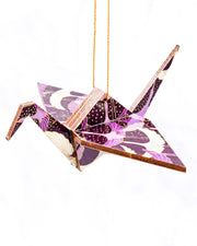 Wooden Origami Crane - White & Purple Cranes on Purple
