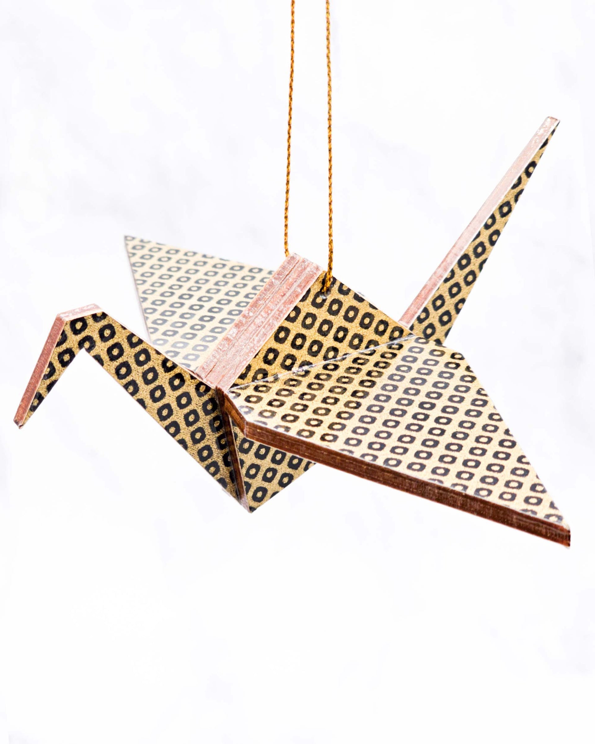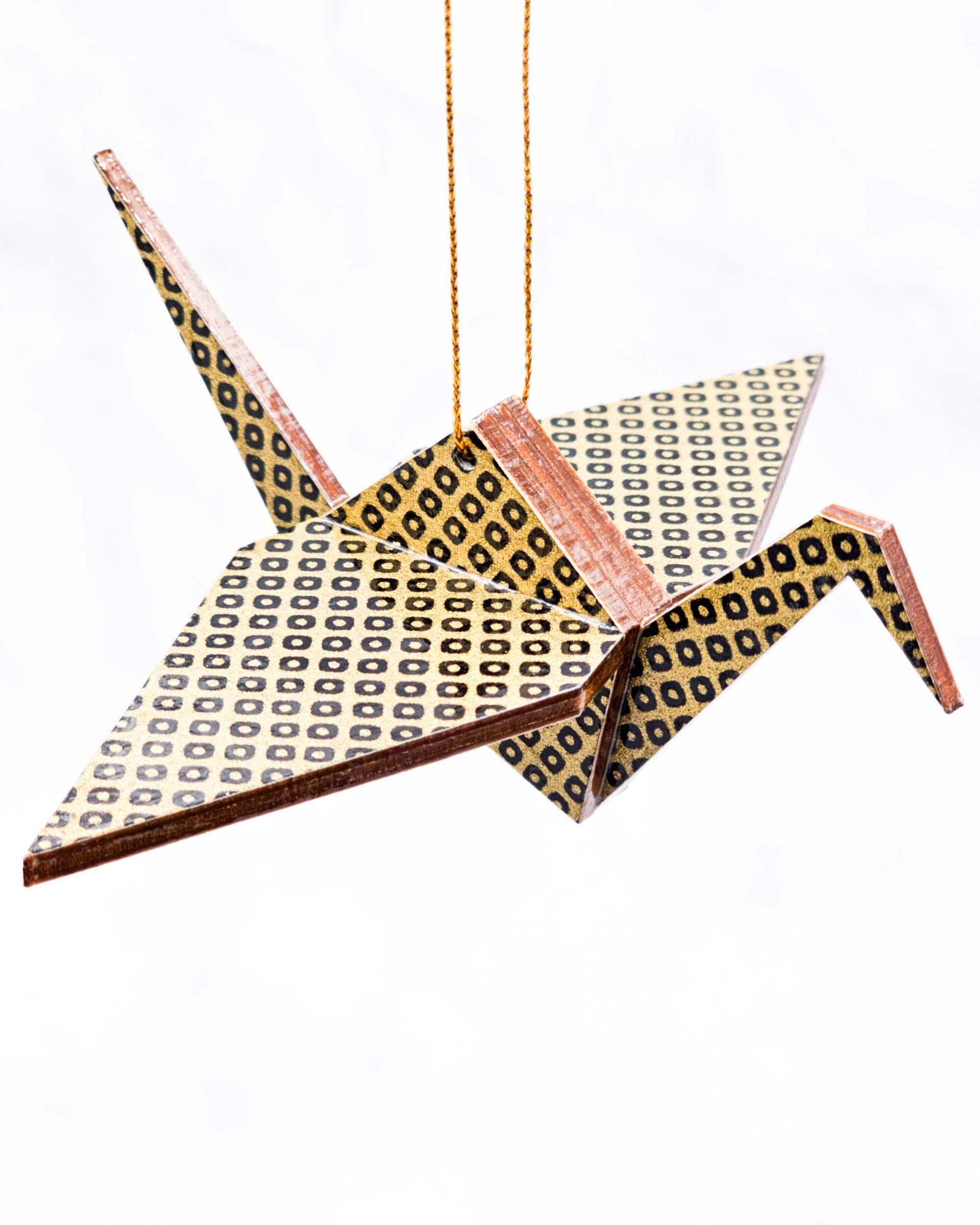 Wooden Origami Crane - Black & Gold Kanoko