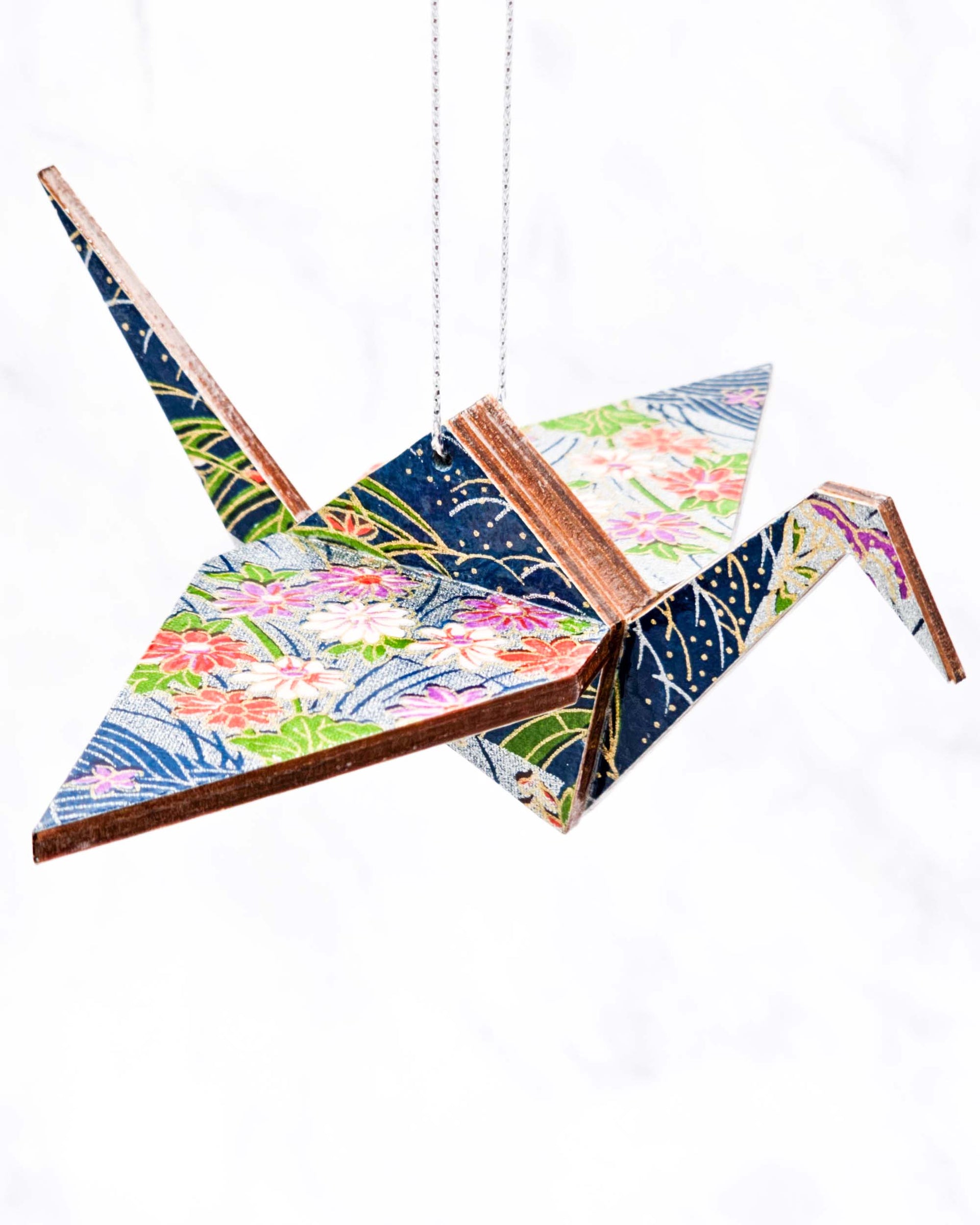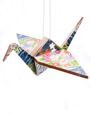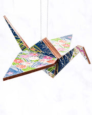 These light-weight origami cranes are handmade from laser-cut wood and Japanese chiyogami paper. They can hang as an ornament or be displayed on a desk/shelf. They are well sealed by hand for durability. Even though they are water resistant due to the many layers of sealant, please do not soak them in water or display outdoors. Displaying in areas with prolonged direct sun exposure may cause the colors to fade over time. The cranes are fragile and delicate parts may break if dropped on a hard surface, so please handle with care. These cranes will last for a long time with proper care.