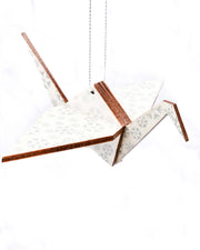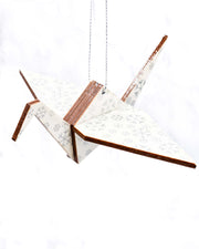 These light-weight origami cranes are handmade from laser-cut wood and Japanese chiyogami paper. They can hang as an ornament or be displayed on a desk/shelf. They are well sealed by hand for durability. Even though they are water resistant due to the many layers of sealant, please do not soak them in water or display outdoors. Displaying in areas with prolonged direct sun exposure may cause the colors to fade over time. The cranes are fragile and delicate parts may break if dropped on a hard surface, so please handle with care. These cranes will last for a long time with proper care.
