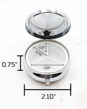 This silver folding metal pill box/case is decorated with beautiful authentic Japanese yuzen (chiyogami) paper. The design is protected under scratch resistant epoxy.
