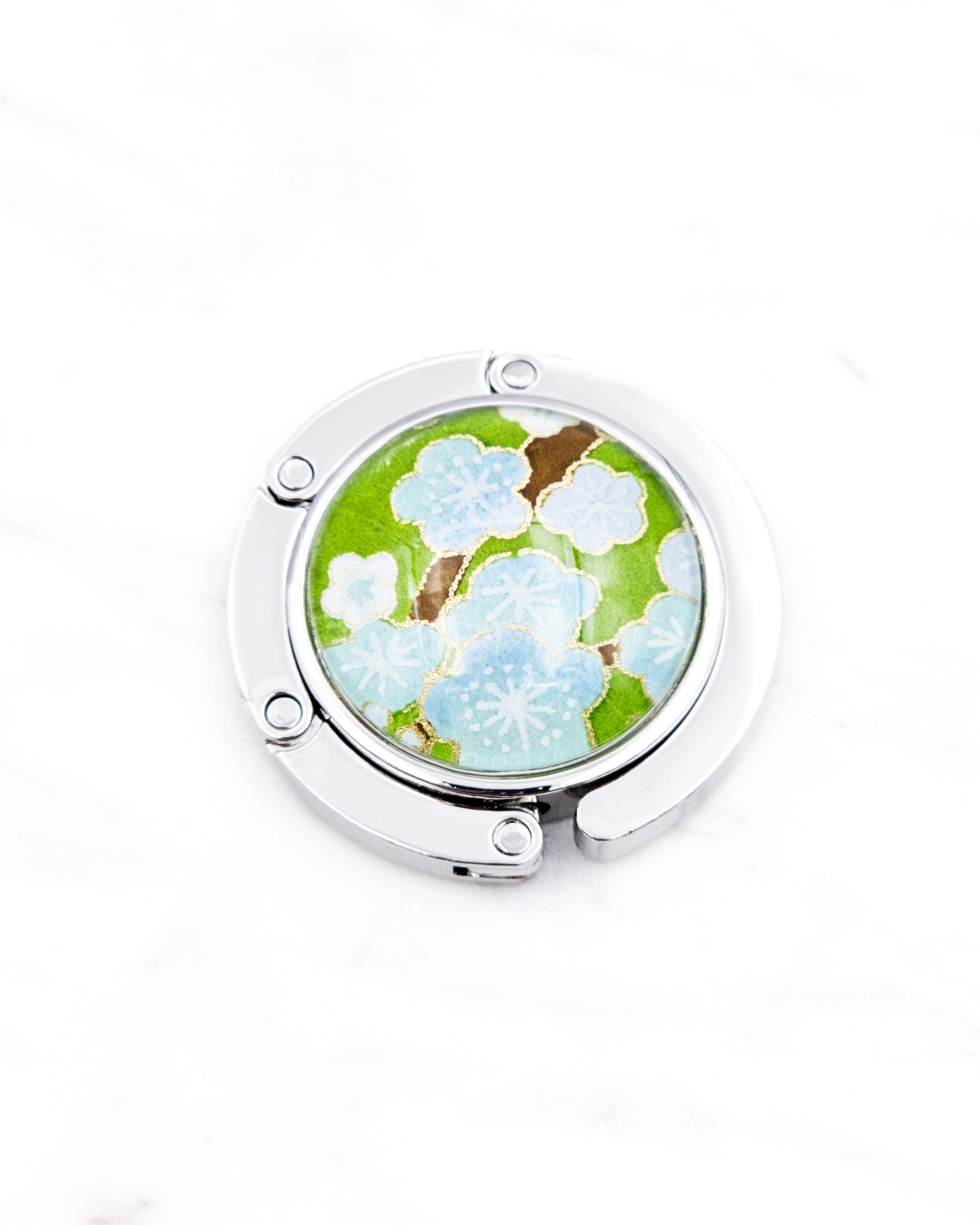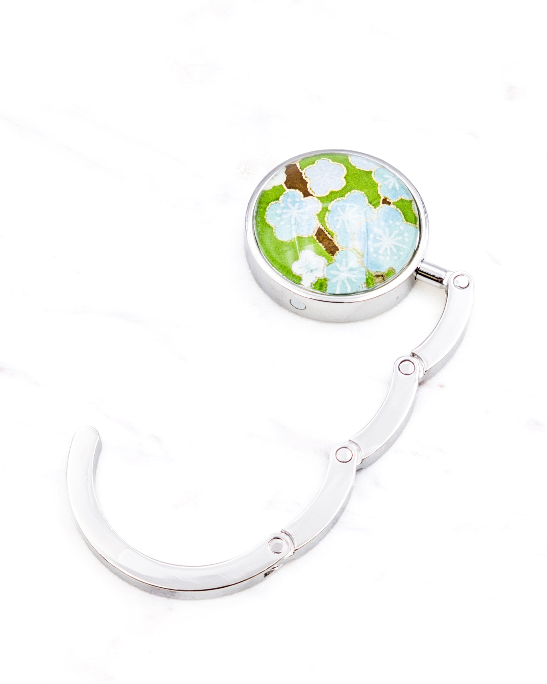 Tabletop Bag Hanger - Blue Plum Blossom Tree on Green