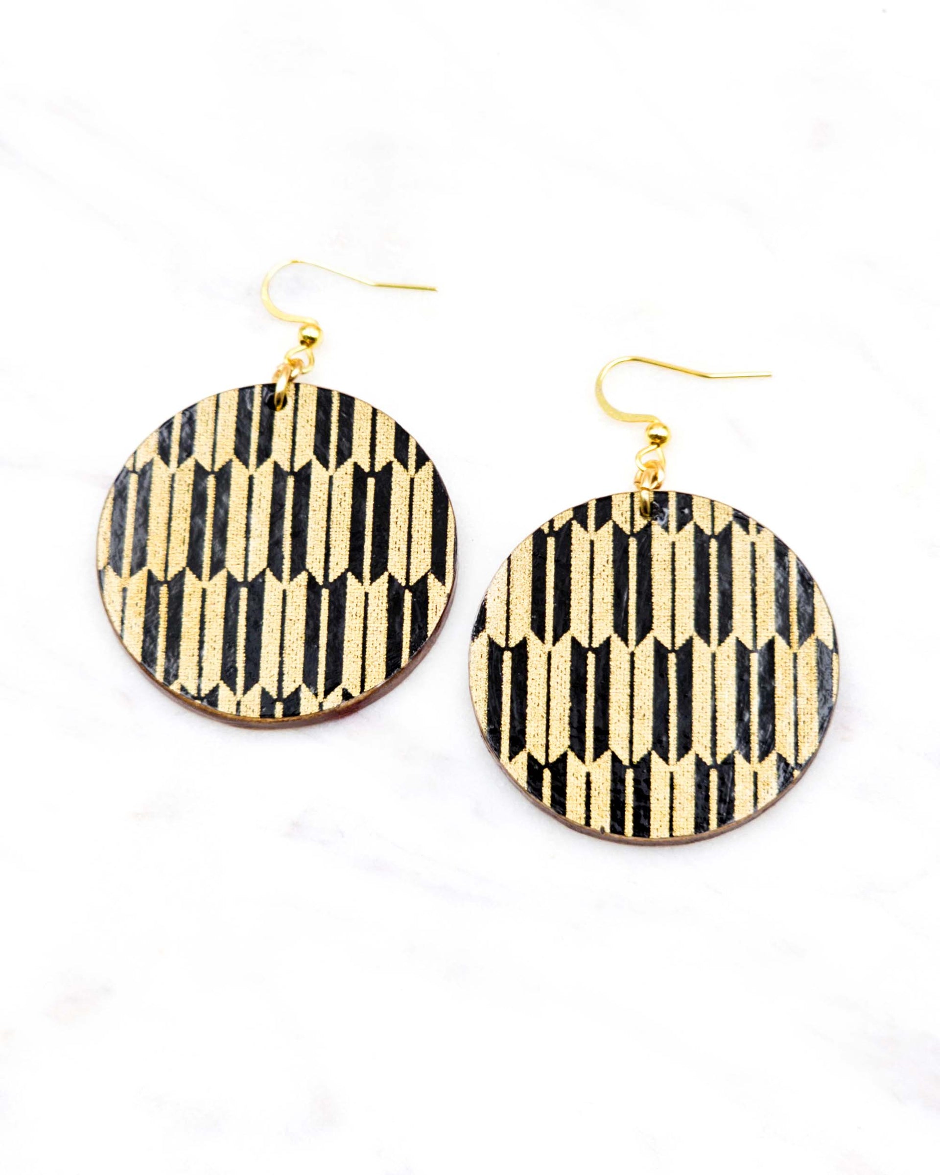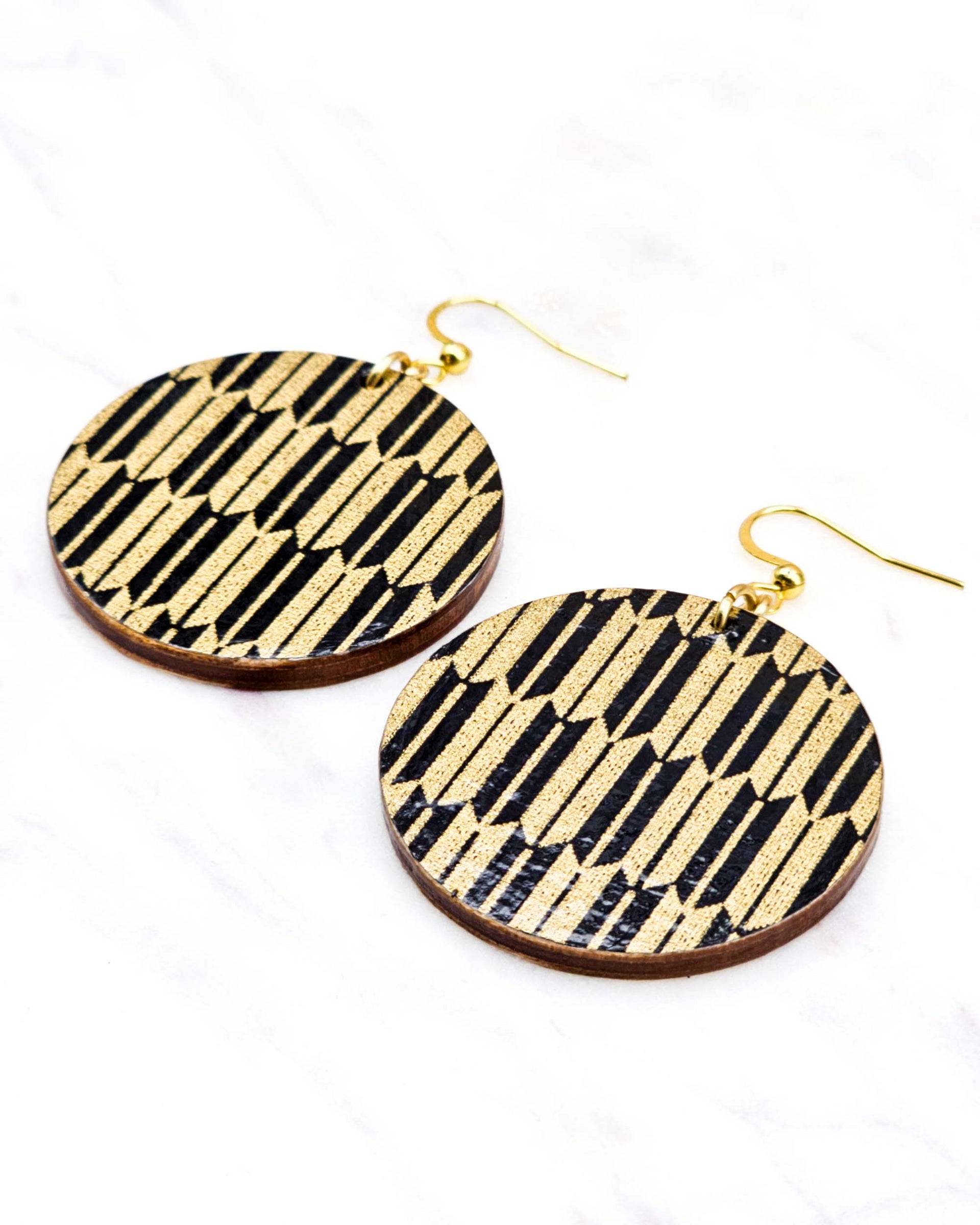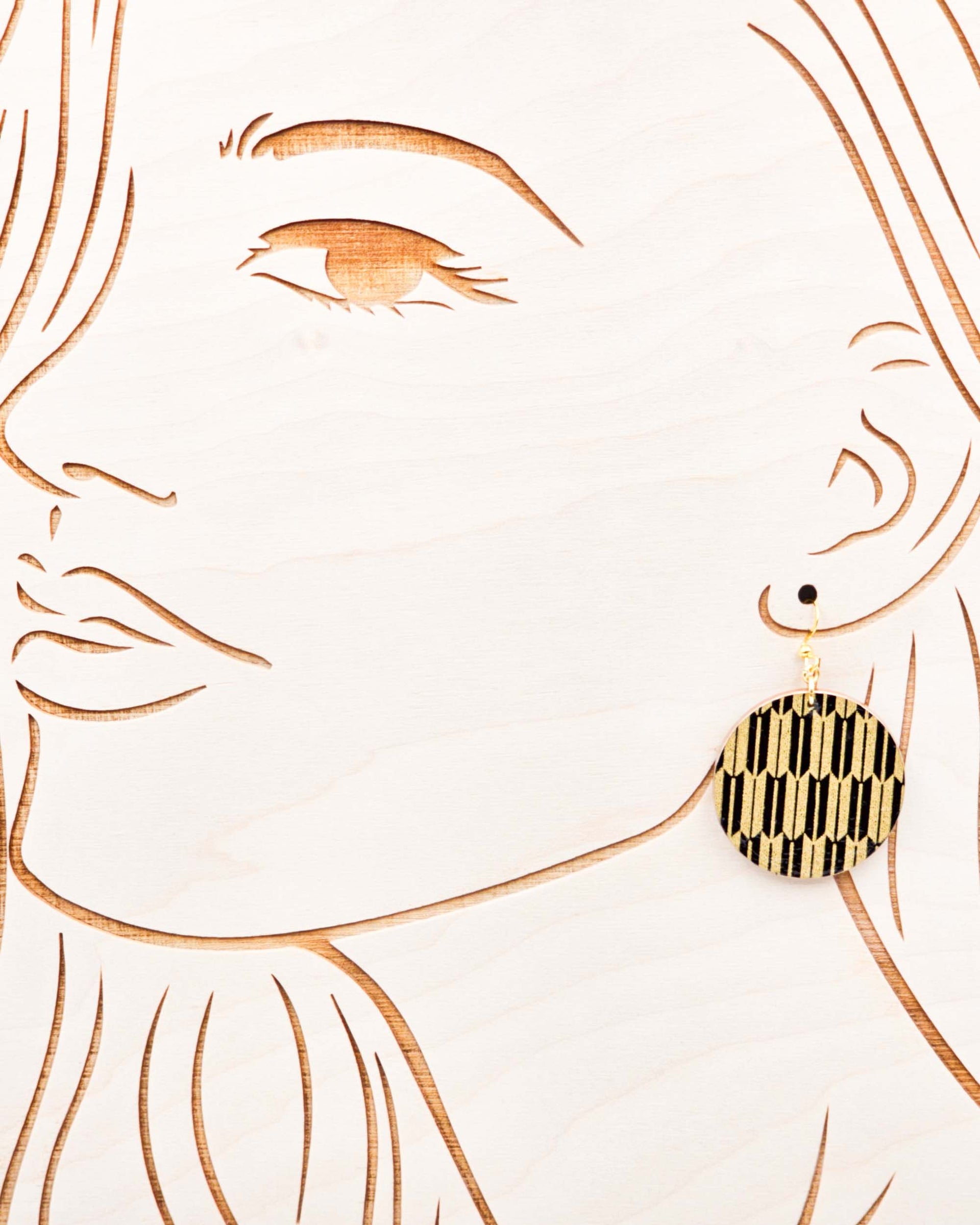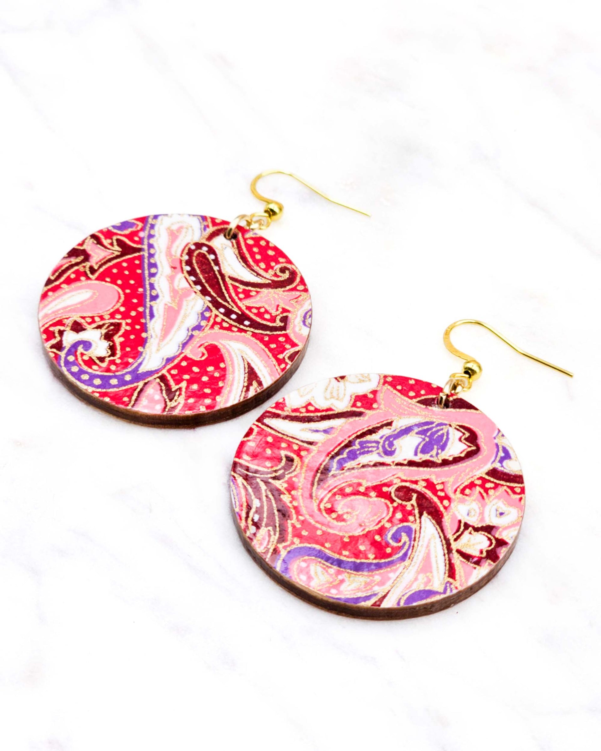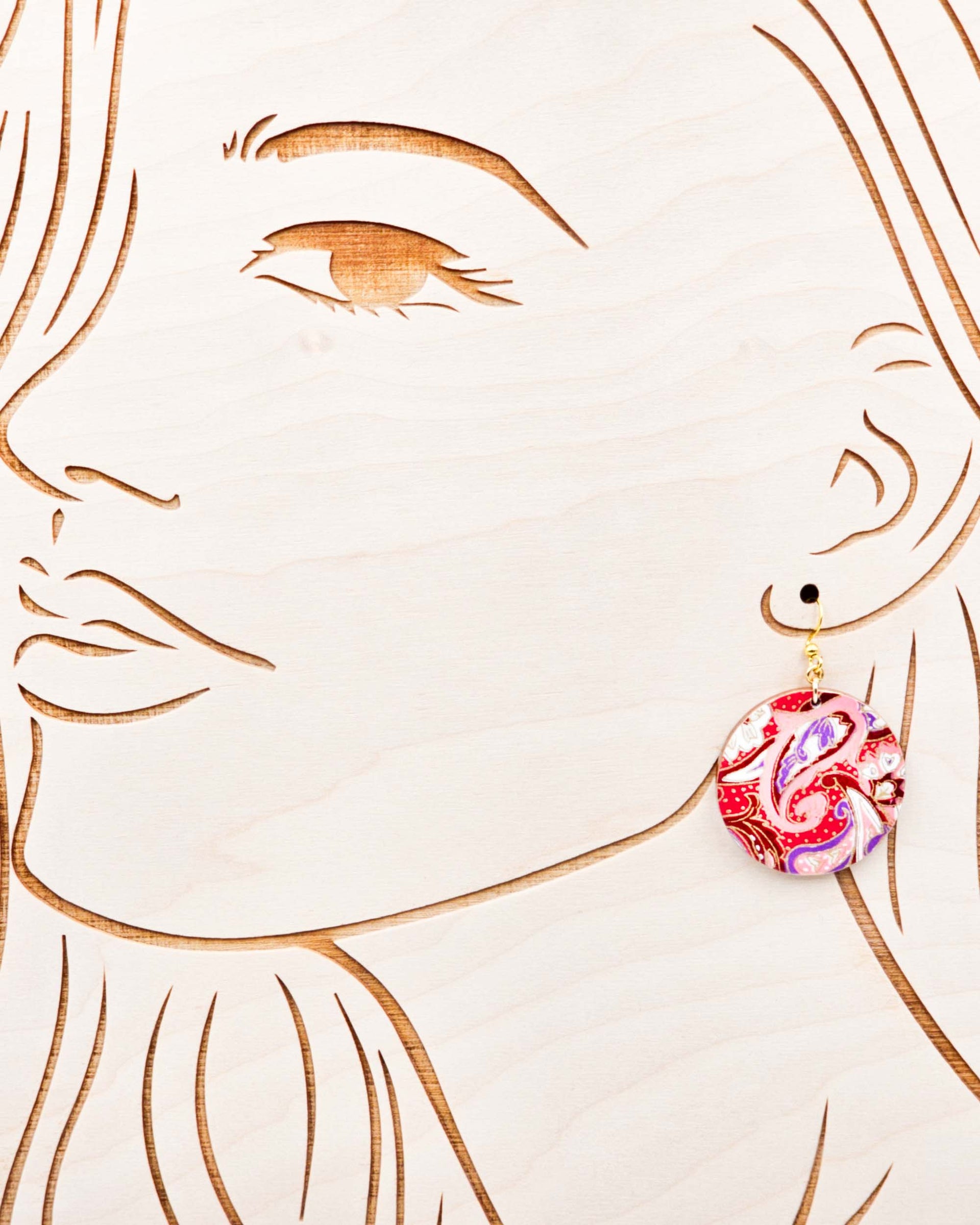 These earrings are made out of birch wood and decorated with Japanese chiyogami paper. They're extremely light weight and are double-sided just in case you have short hair or have your hair up.