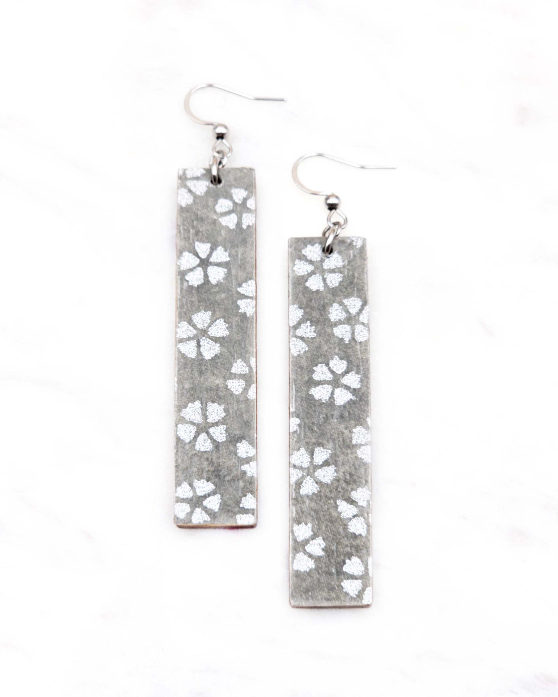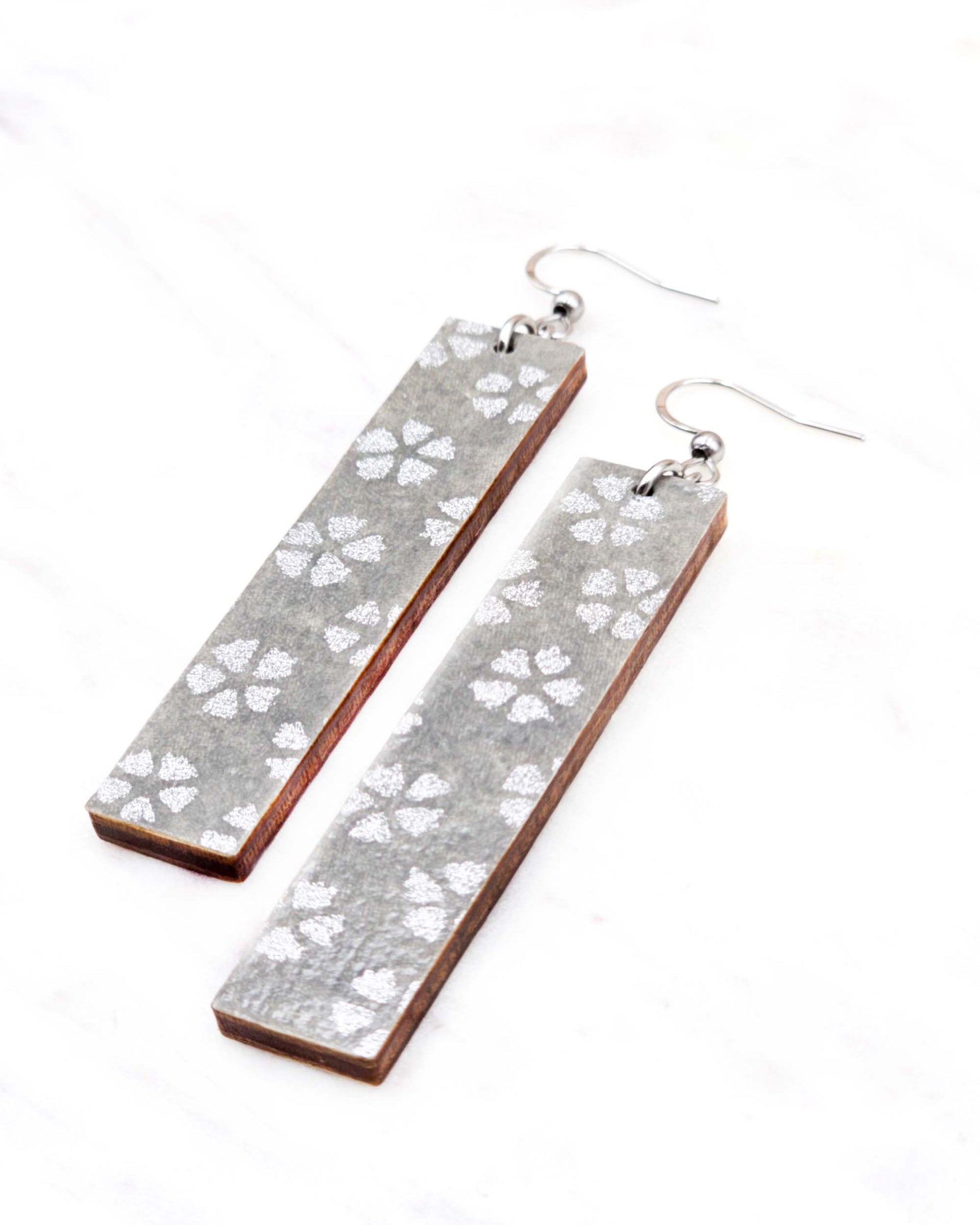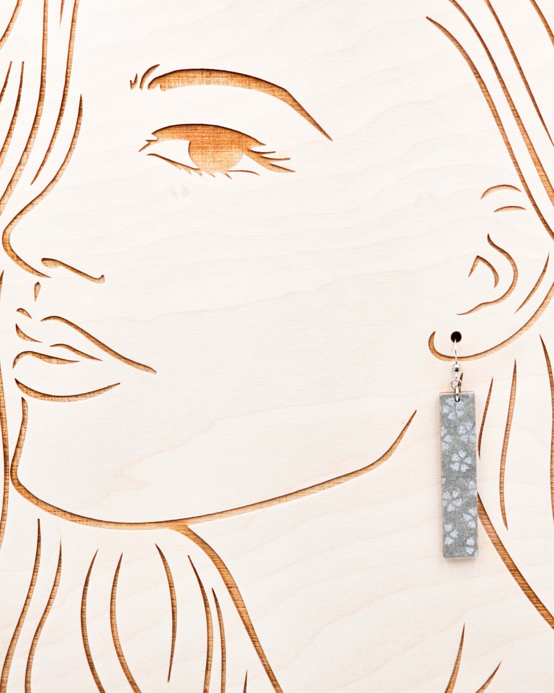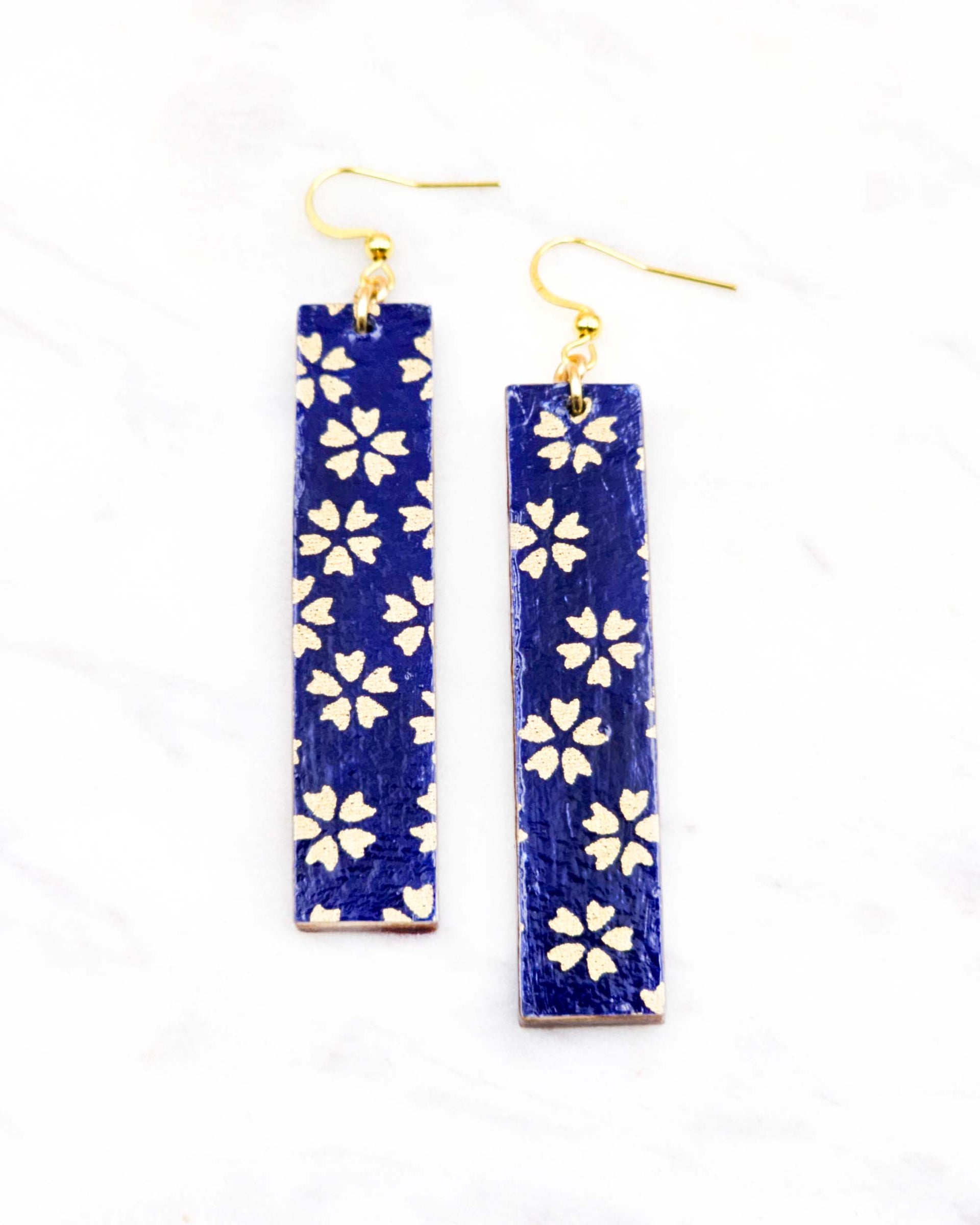 These earrings are made out of birch wood and decorated with Japanese chiyogami paper. They're extremely light weight and are double-sided just in case you have short hair or have your hair up.