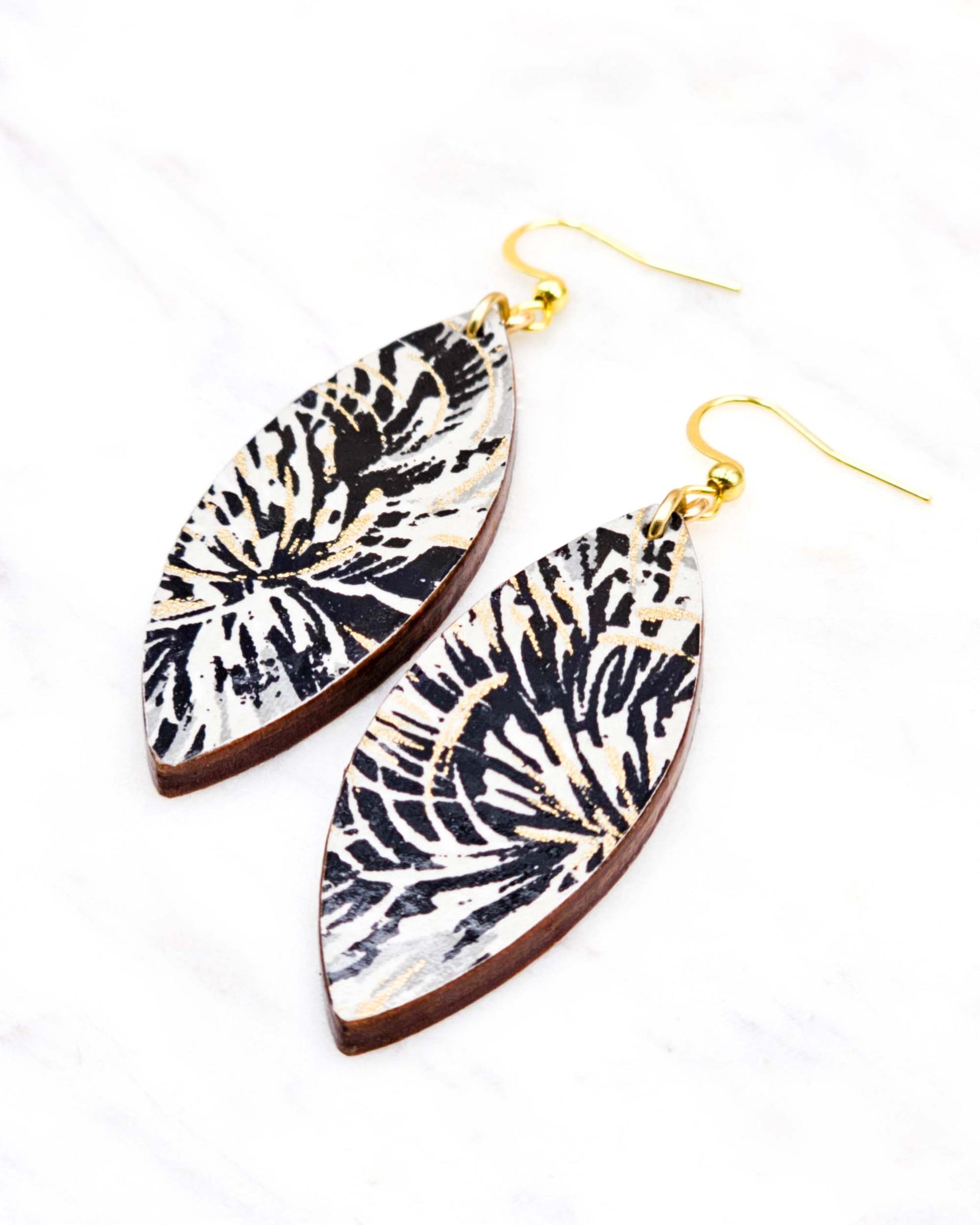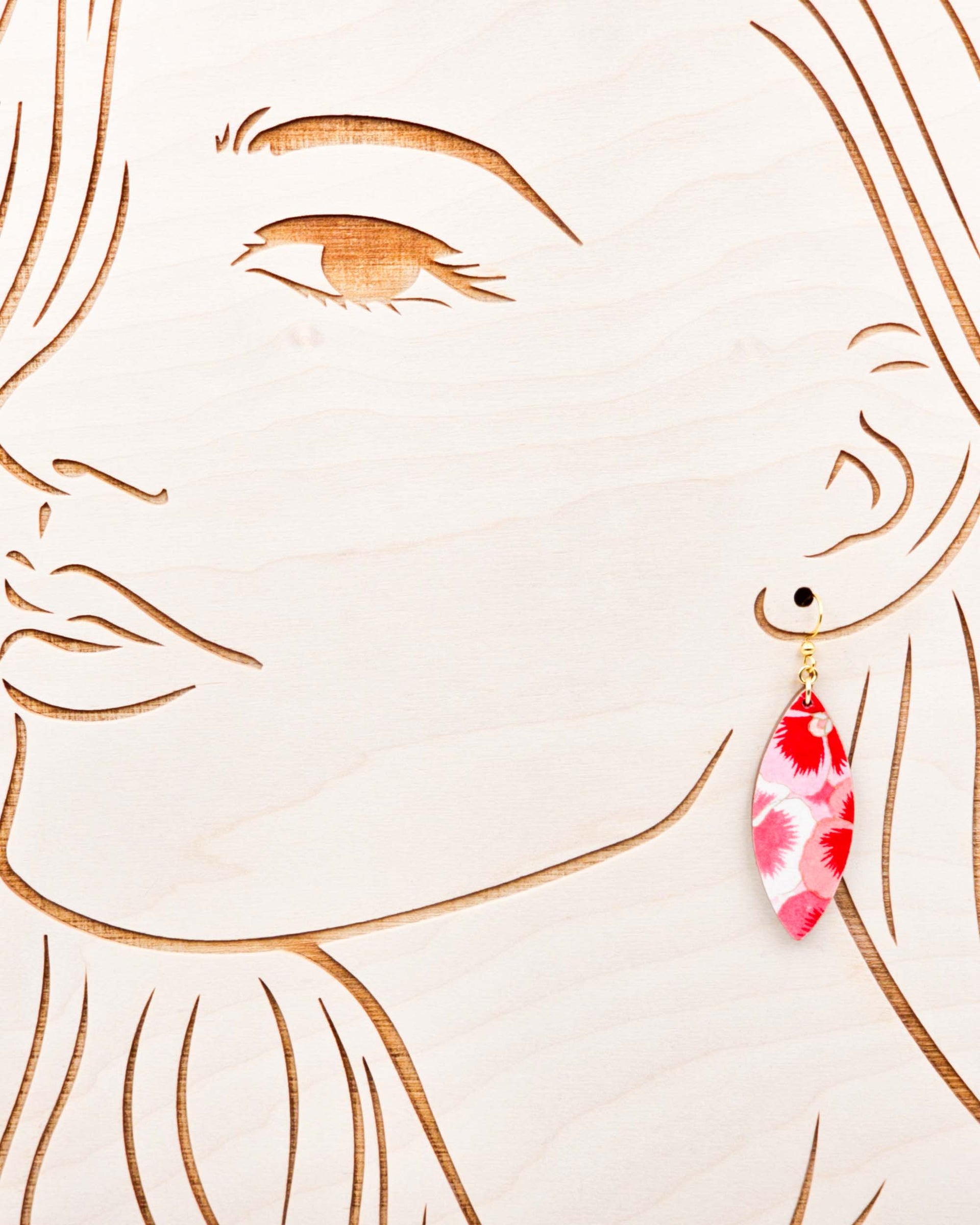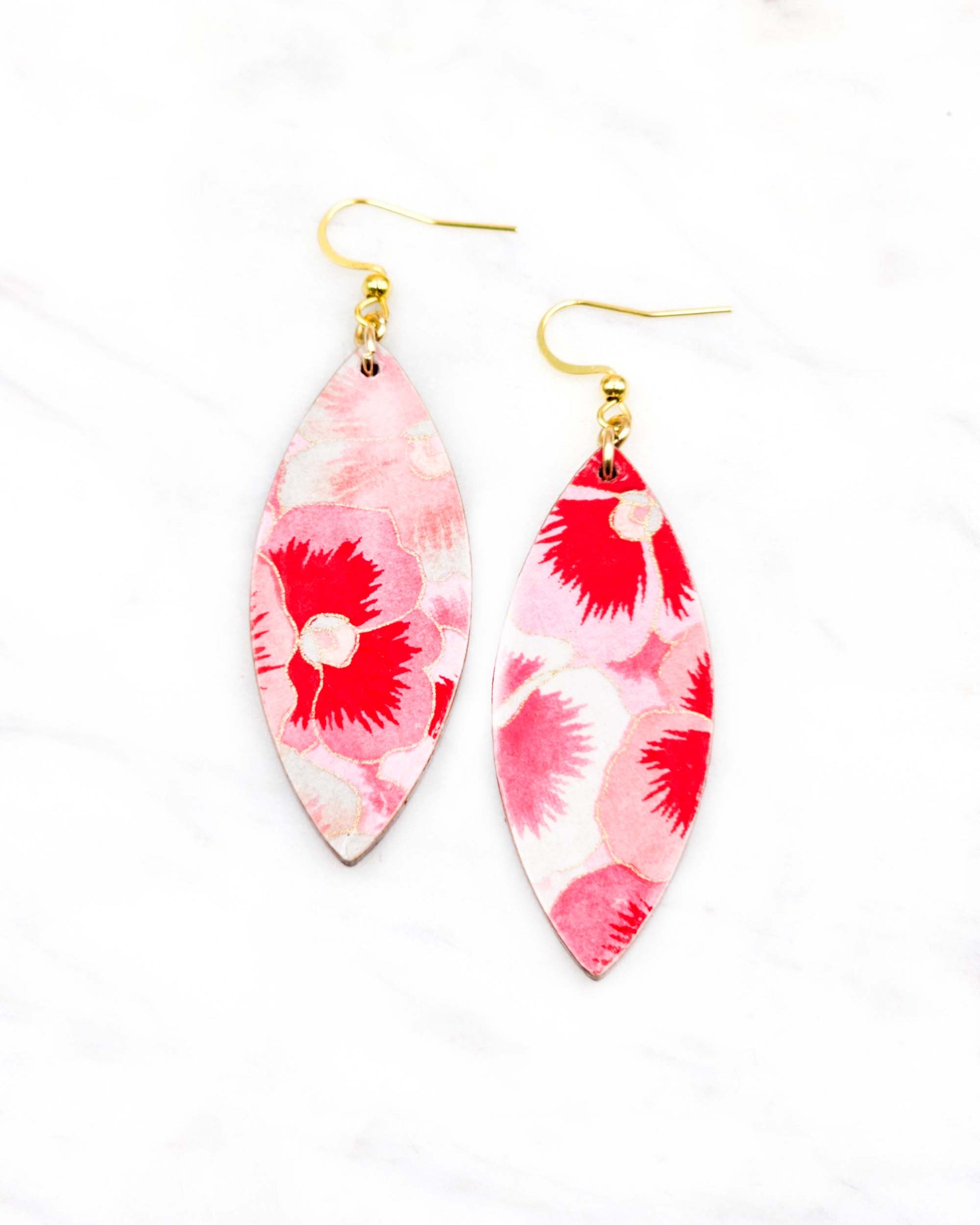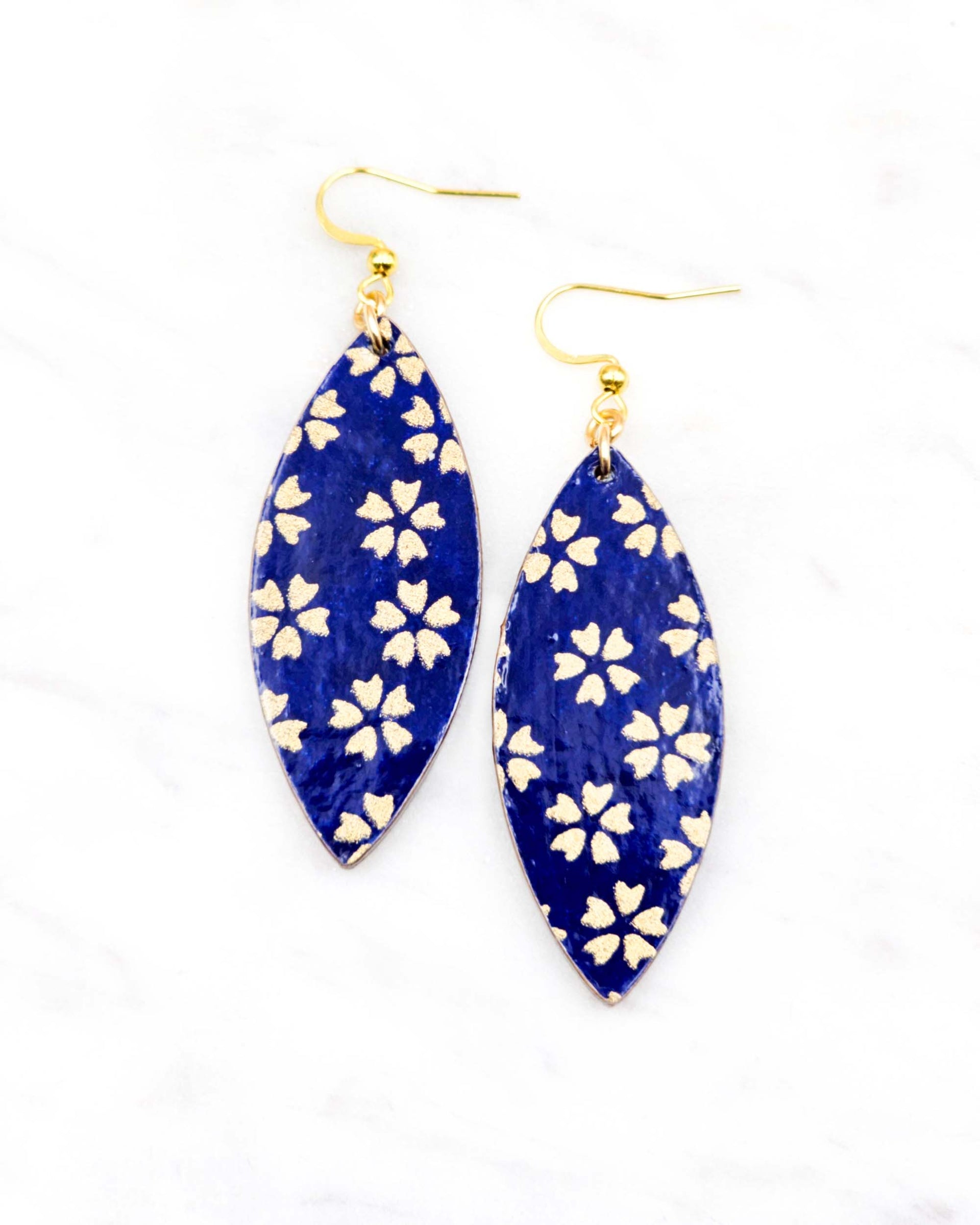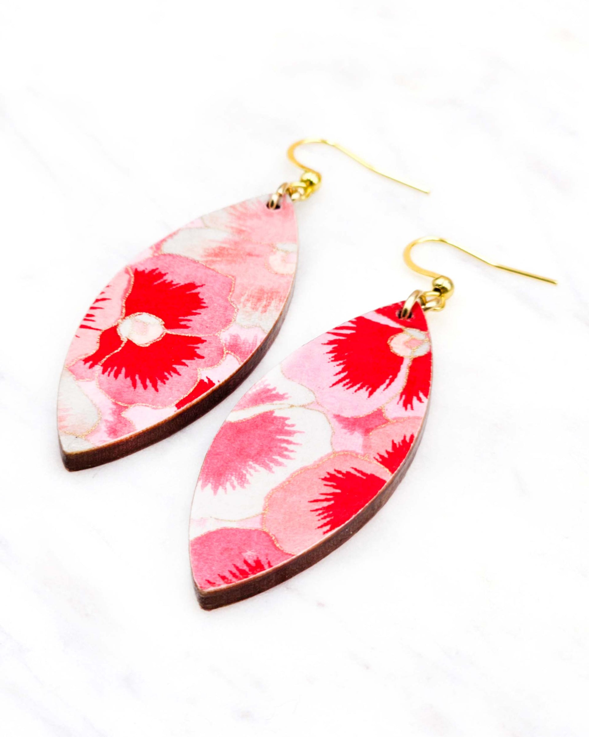 These earrings are made out of birch wood and decorated with Japanese chiyogami paper. They're extremely light weight and are double-sided just in case you have short hair or have your hair up.