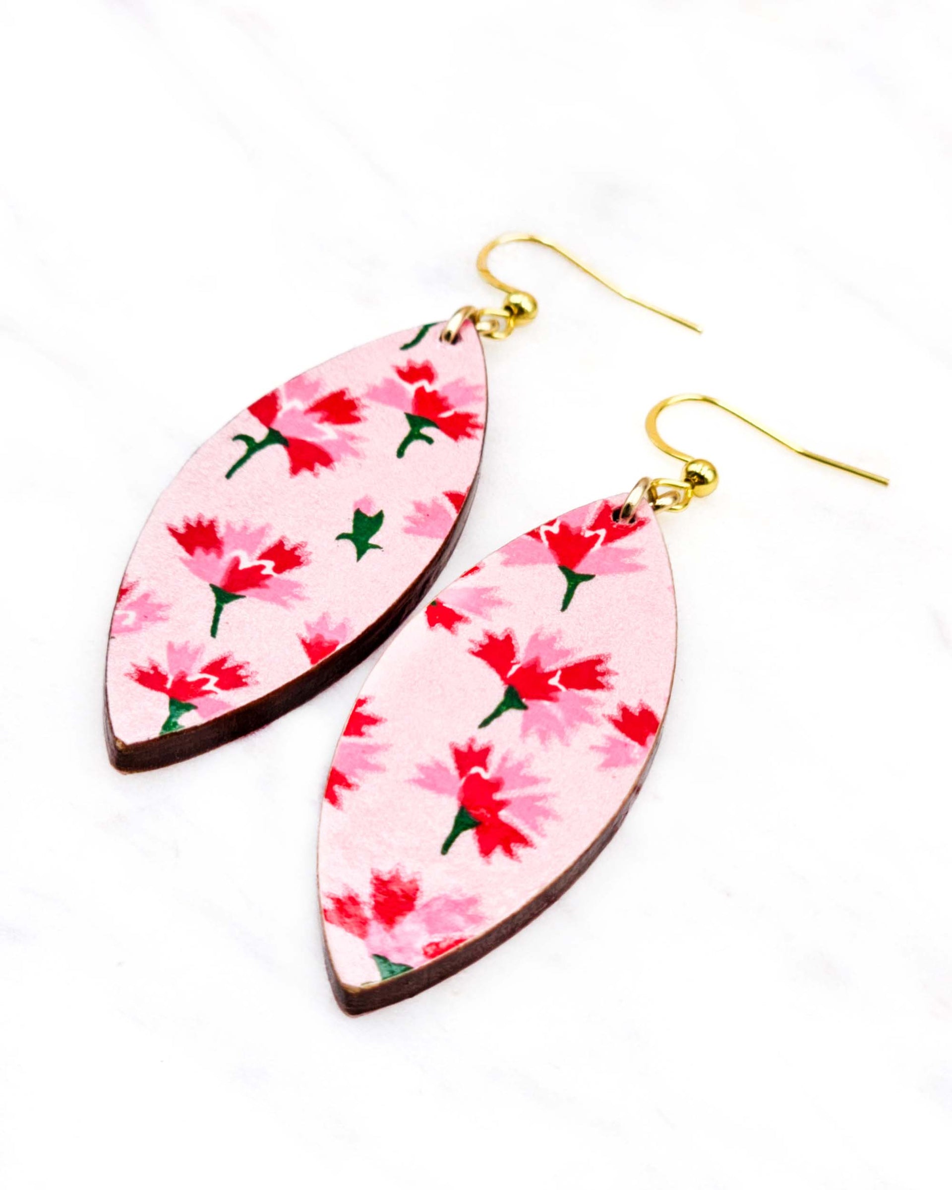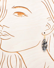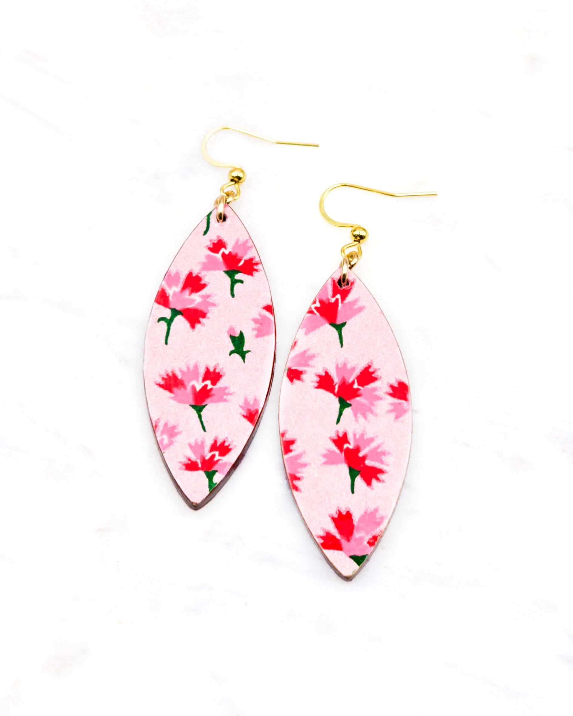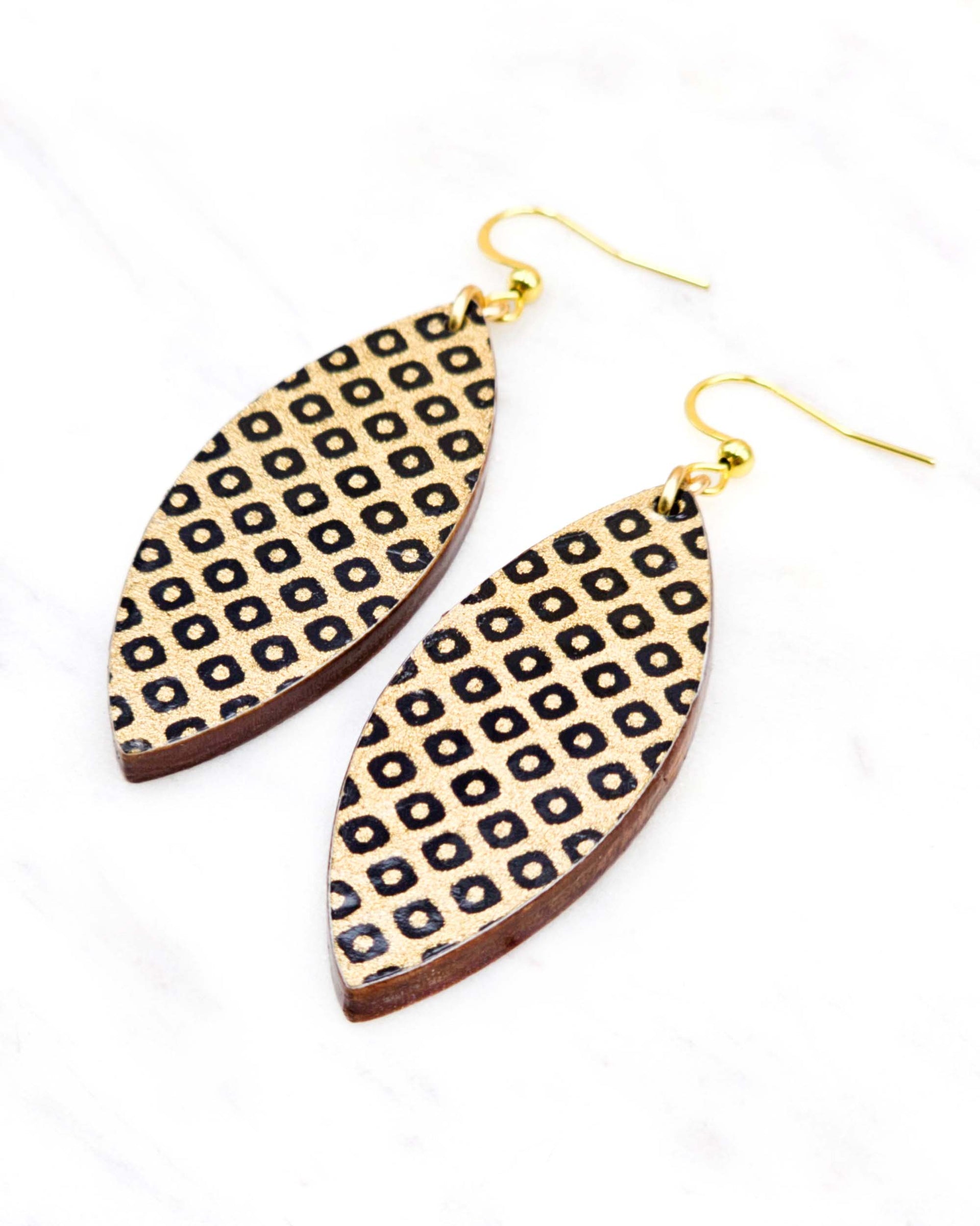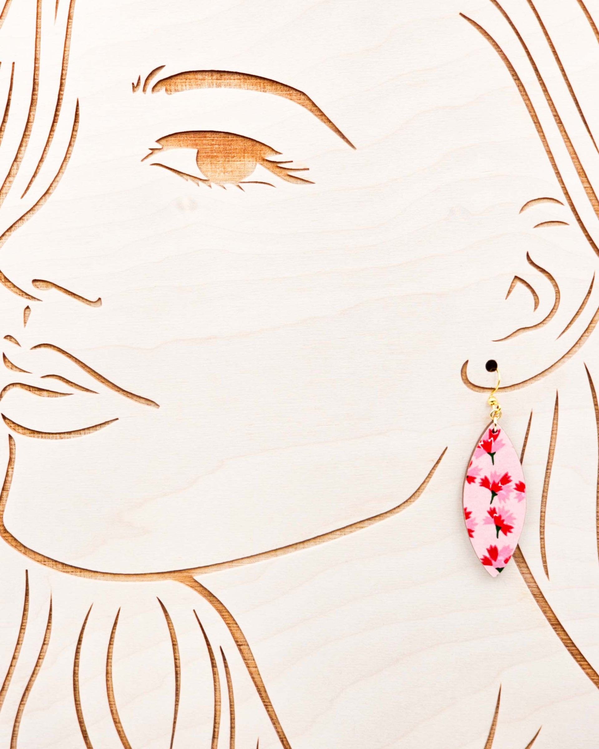 These earrings are made out of birch wood and decorated with Japanese chiyogami paper. They're extremely light weight and are double-sided just in case you have short hair or have your hair up.