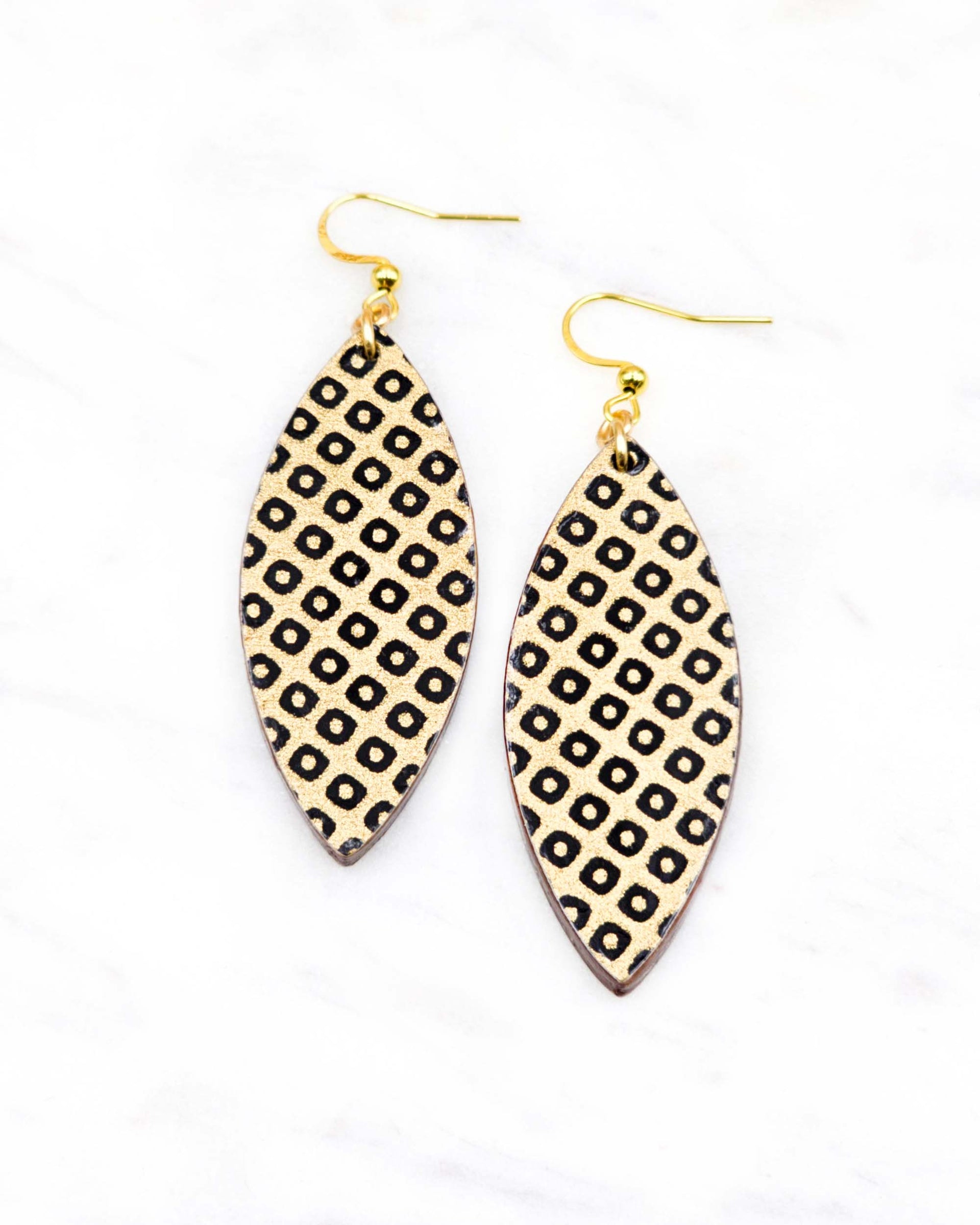 Ear wires are stainless steel and are either gold or silver colored based on the design used. If you would like the ear wires changed from one to another, then leave a note with your order and it'll be changed out before shipping.