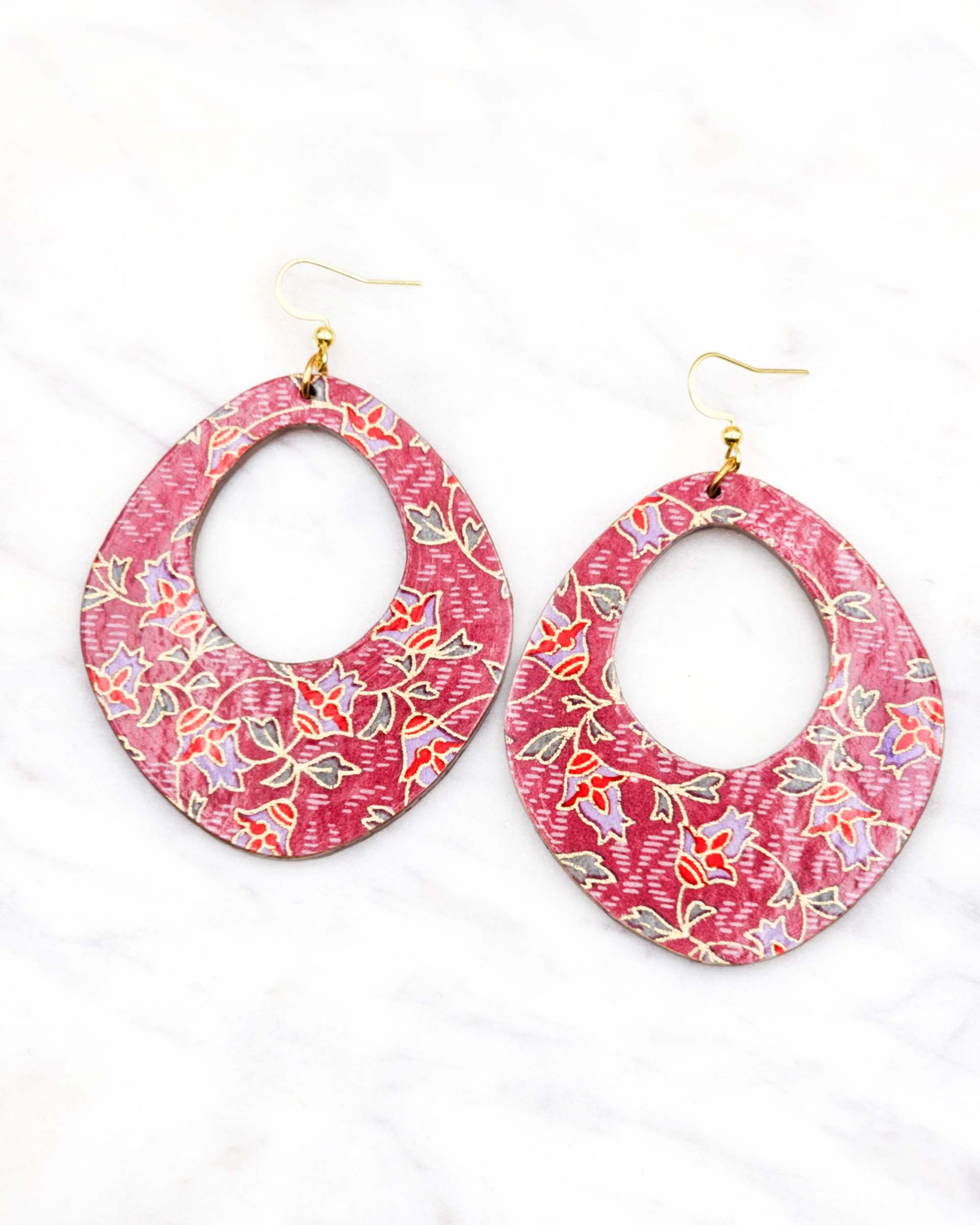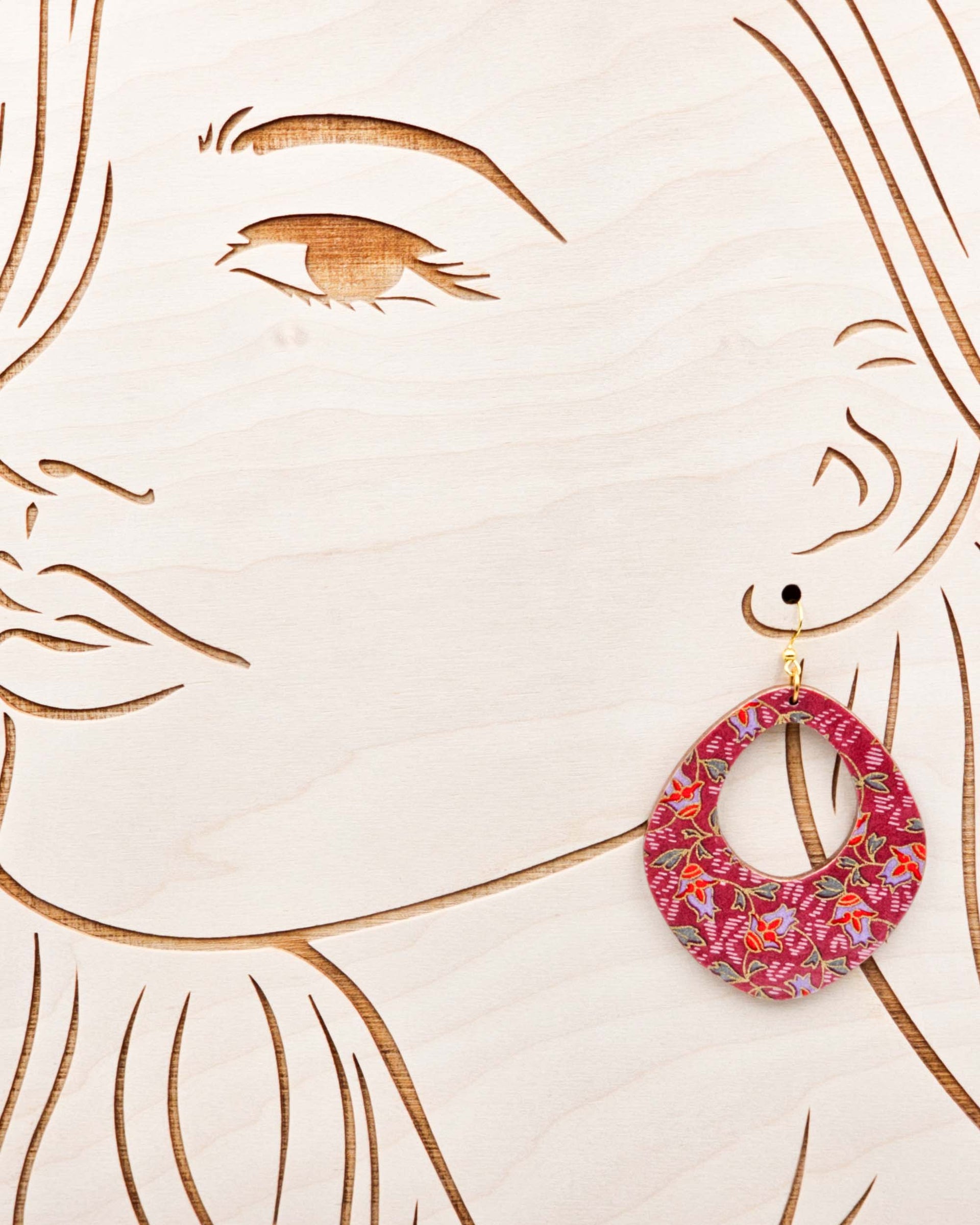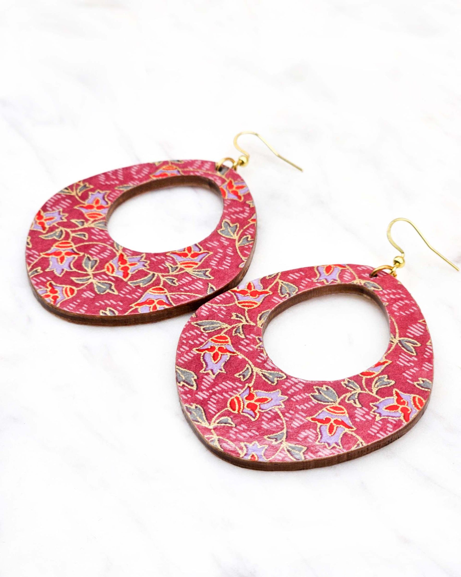 These earrings are made out of birch wood and decorated with Japanese chiyogami paper. They're extremely light weight and are double-sided just in case you have short hair or have your hair up.