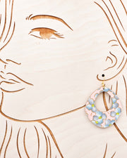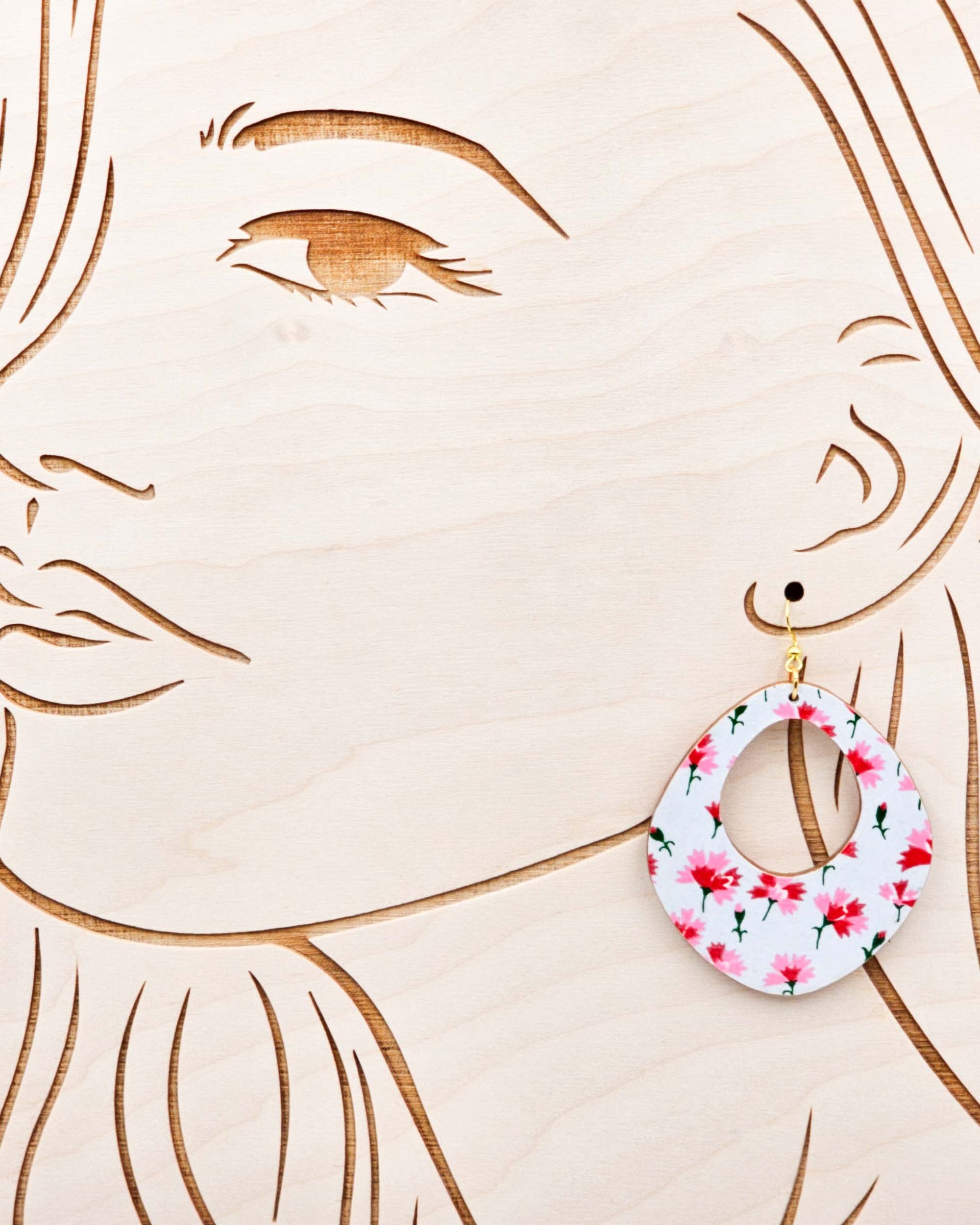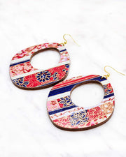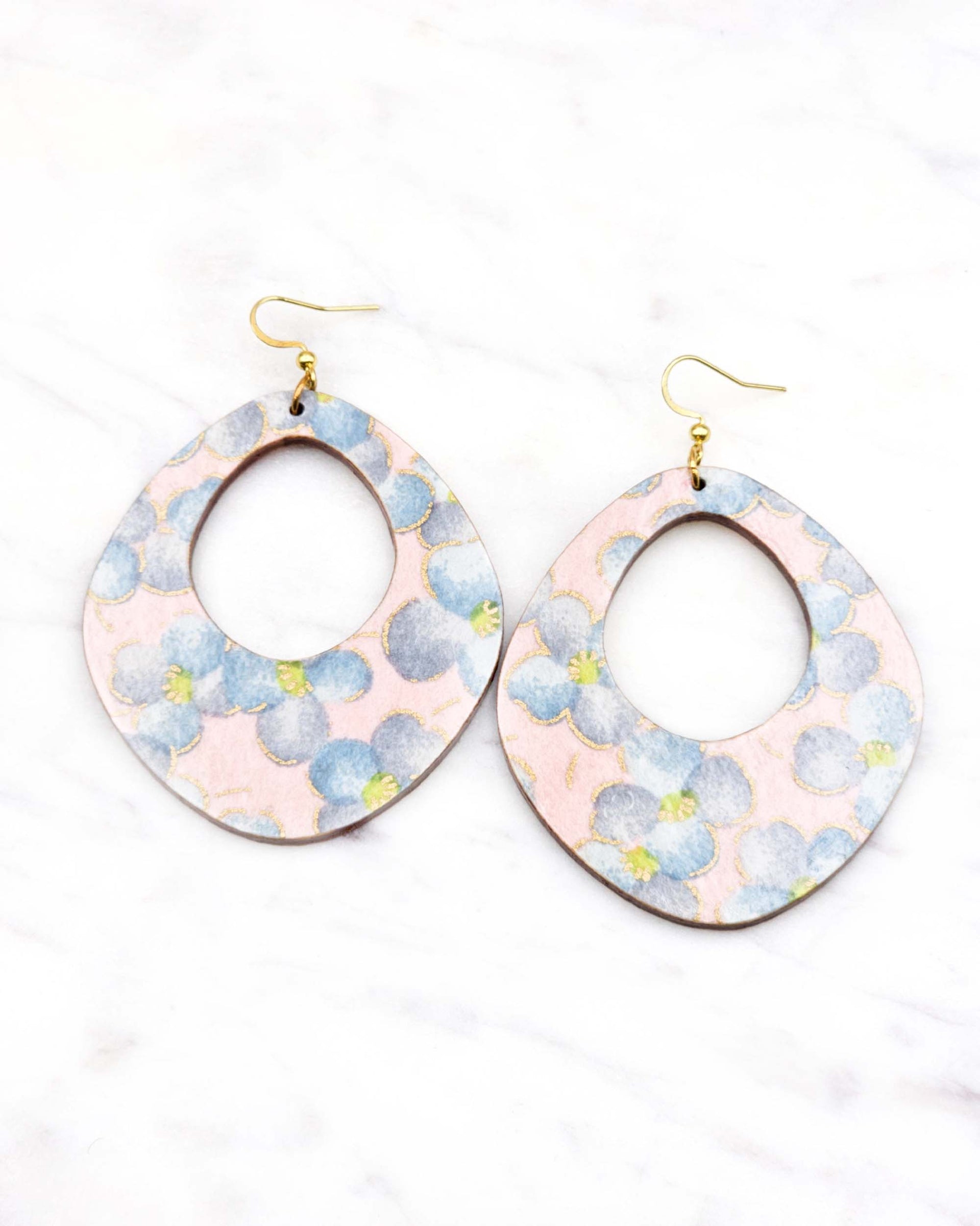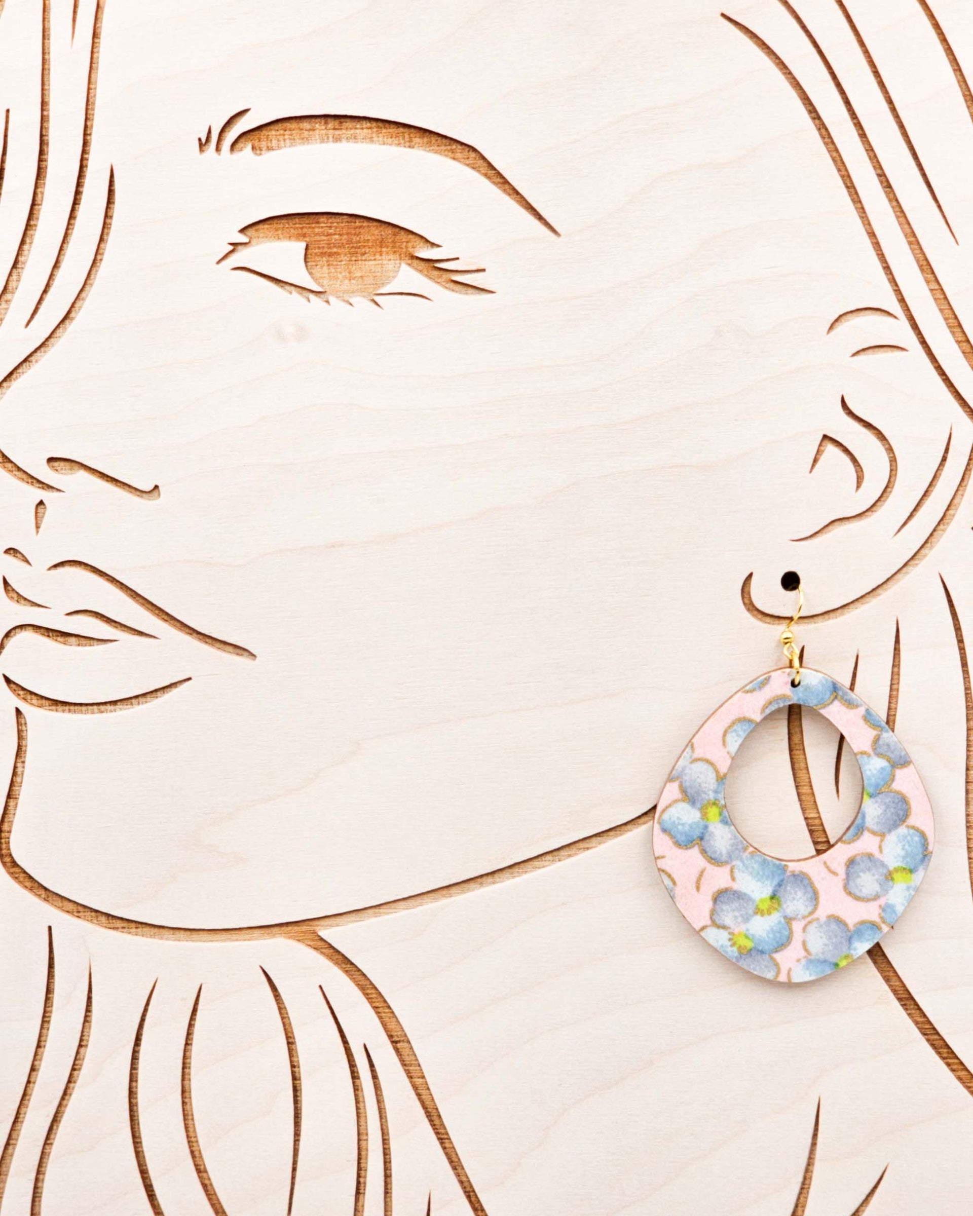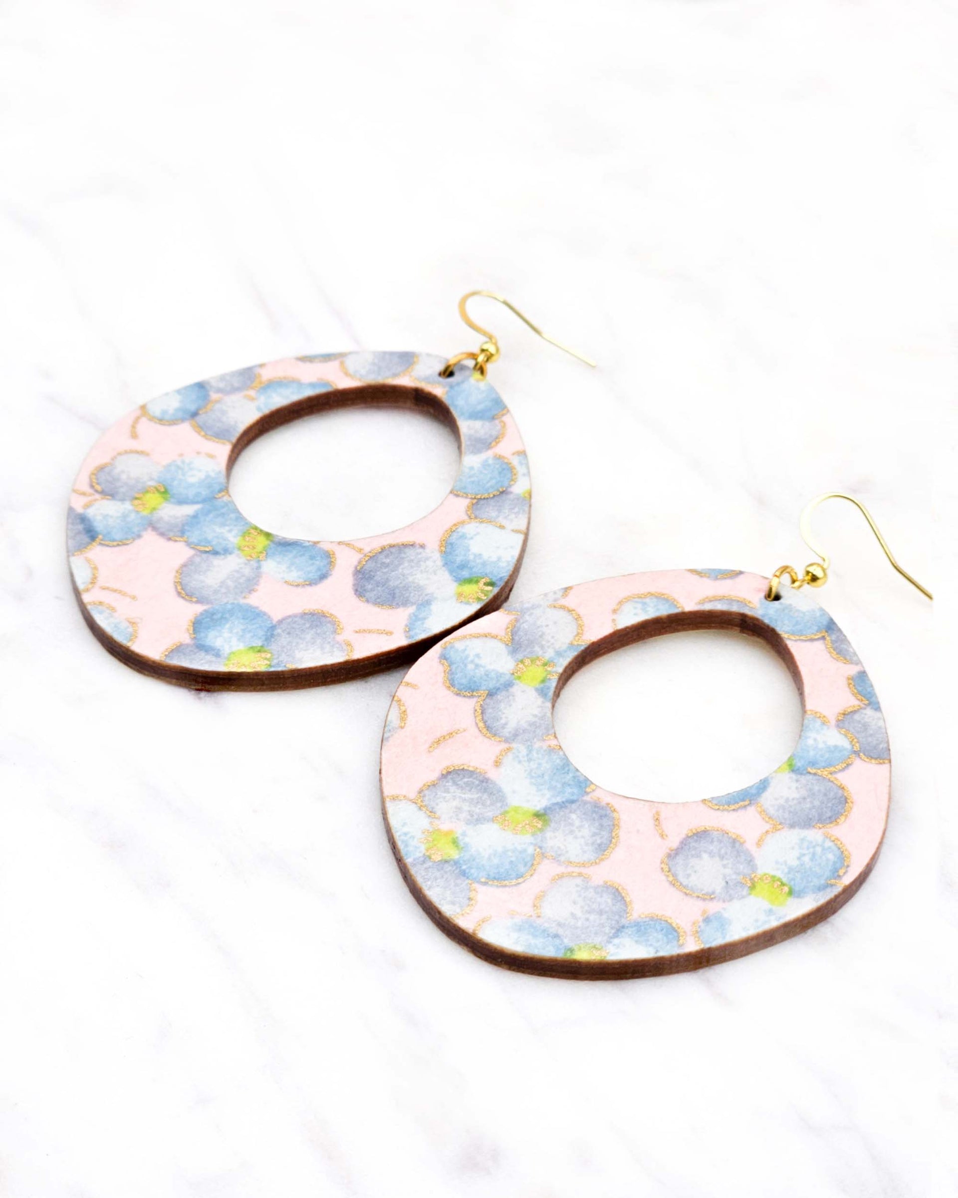 These earrings are made out of birch wood and decorated with Japanese chiyogami paper. They're extremely light weight and are double-sided just in case you have short hair or have your hair up.