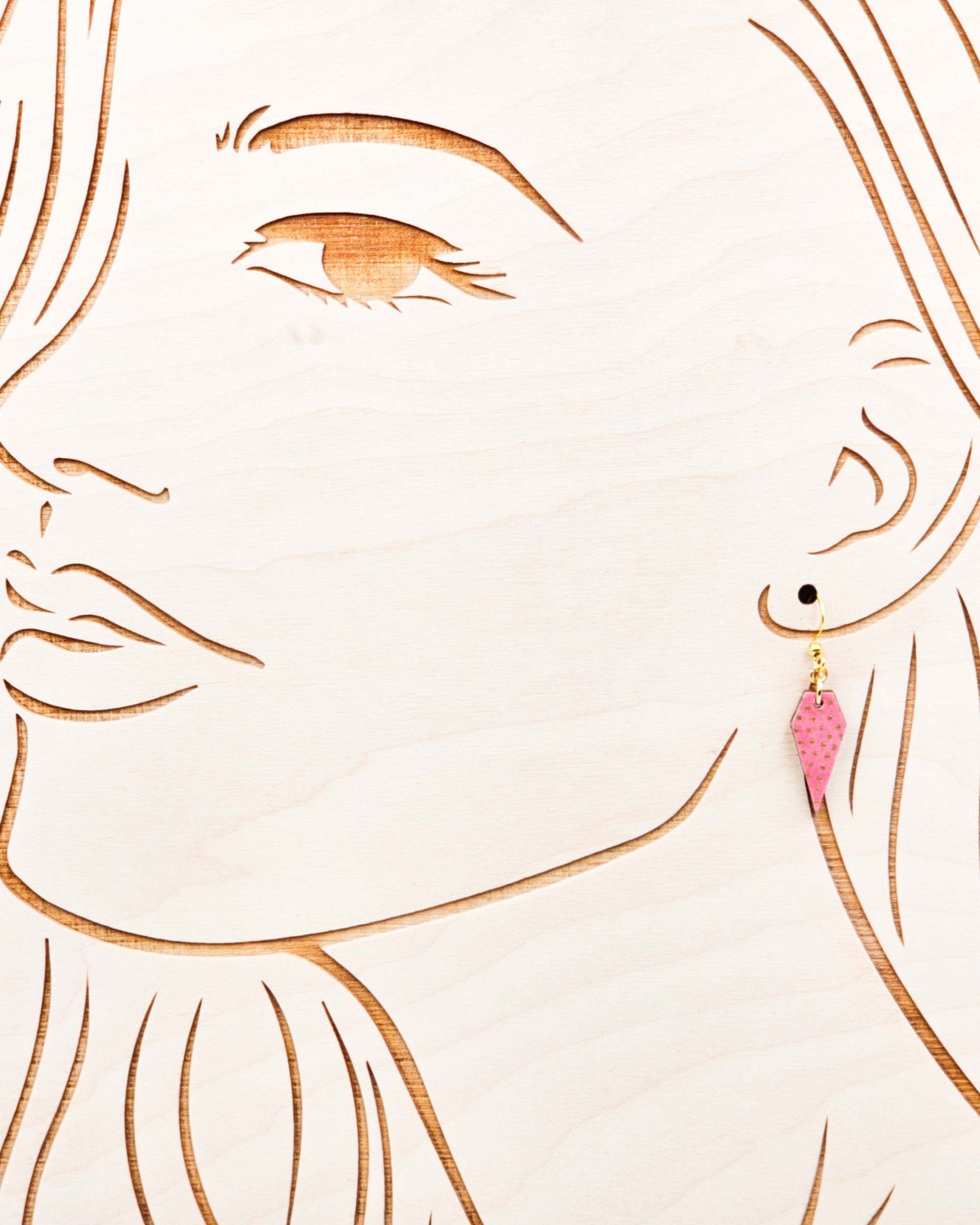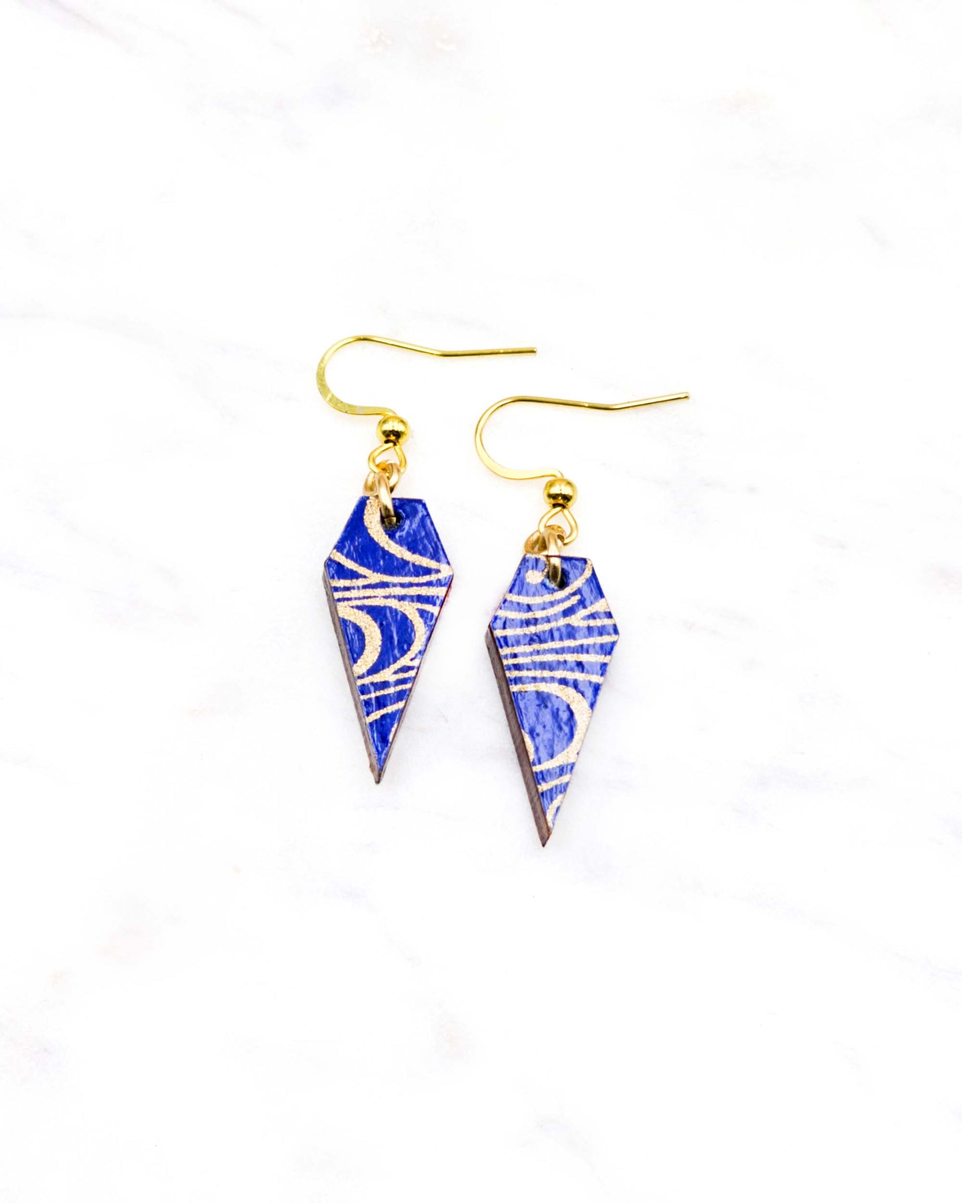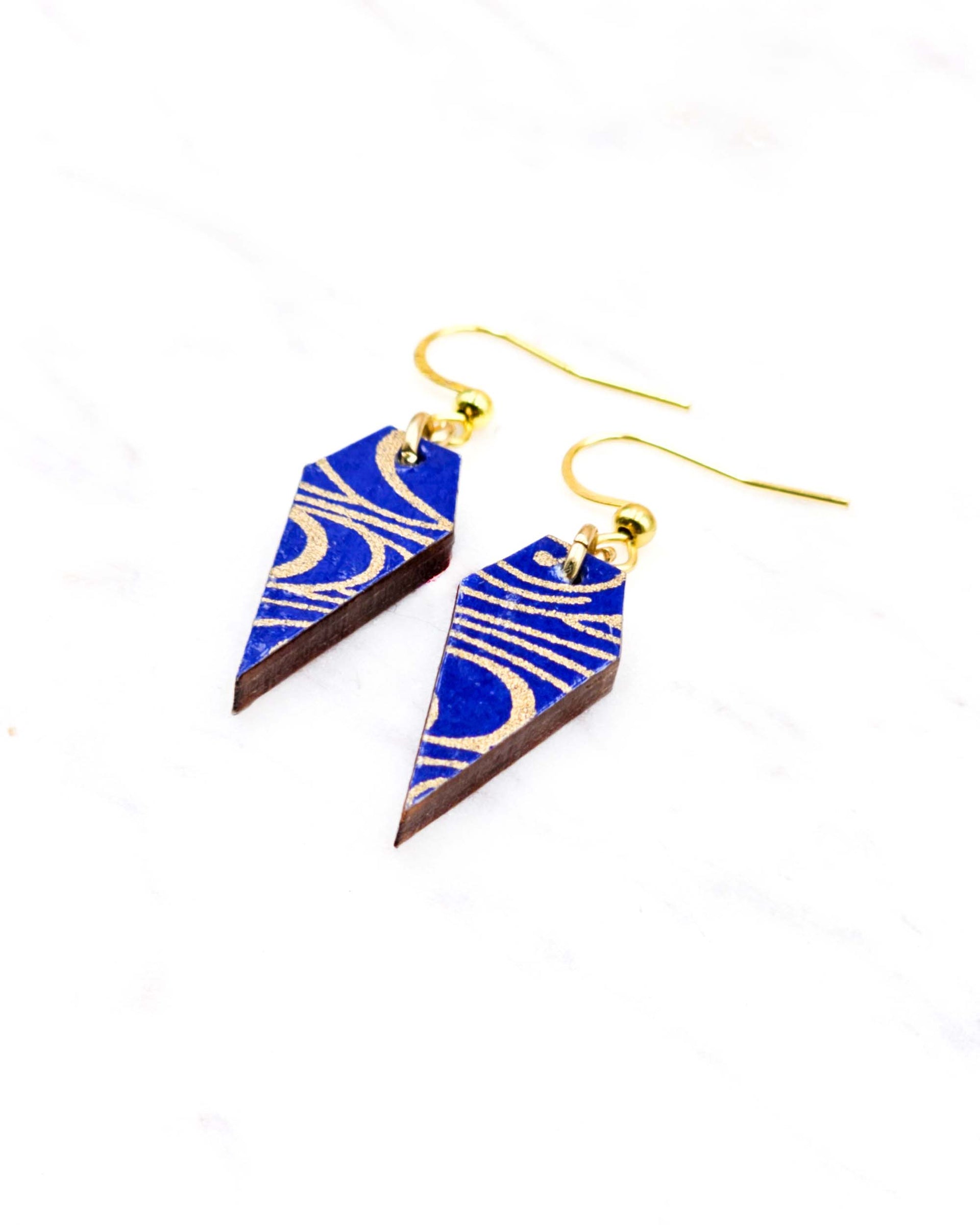 These earrings are made out of birch wood and decorated with Japanese chiyogami paper. They're extremely light weight and are double-sided just in case you have short hair or have your hair up.