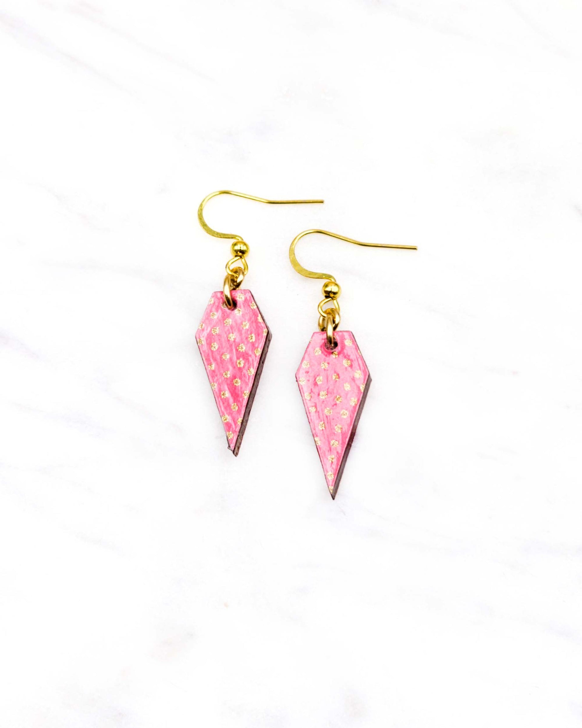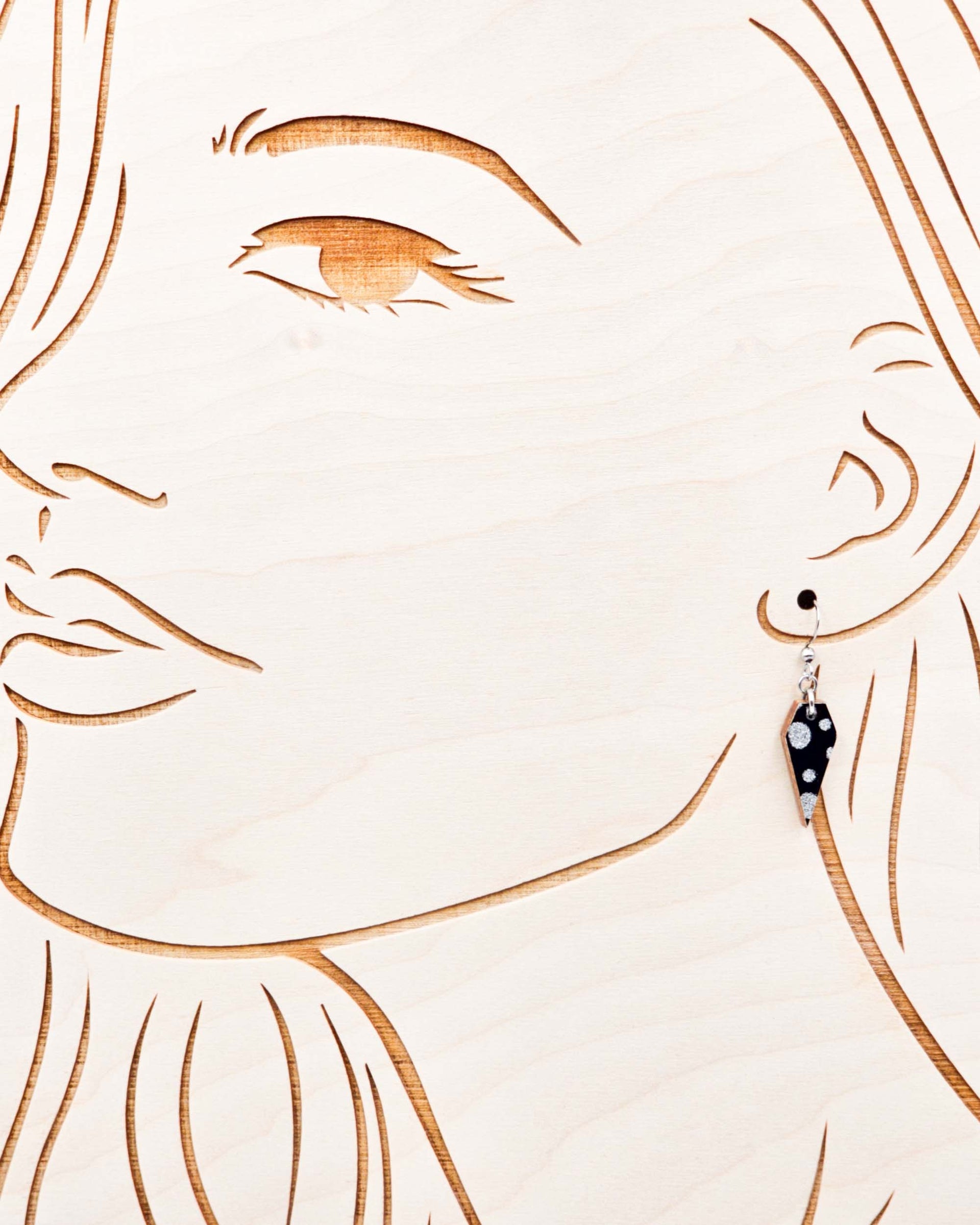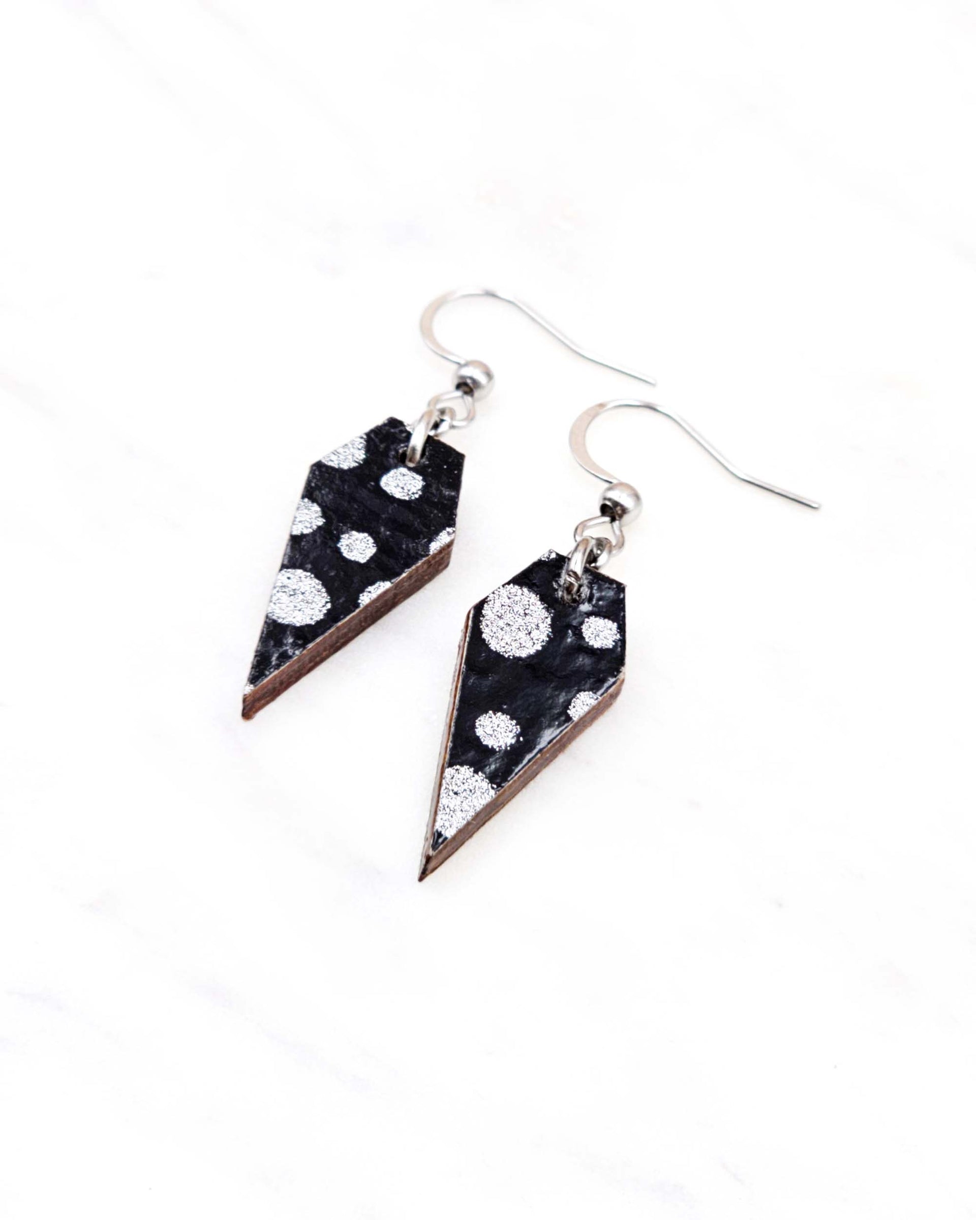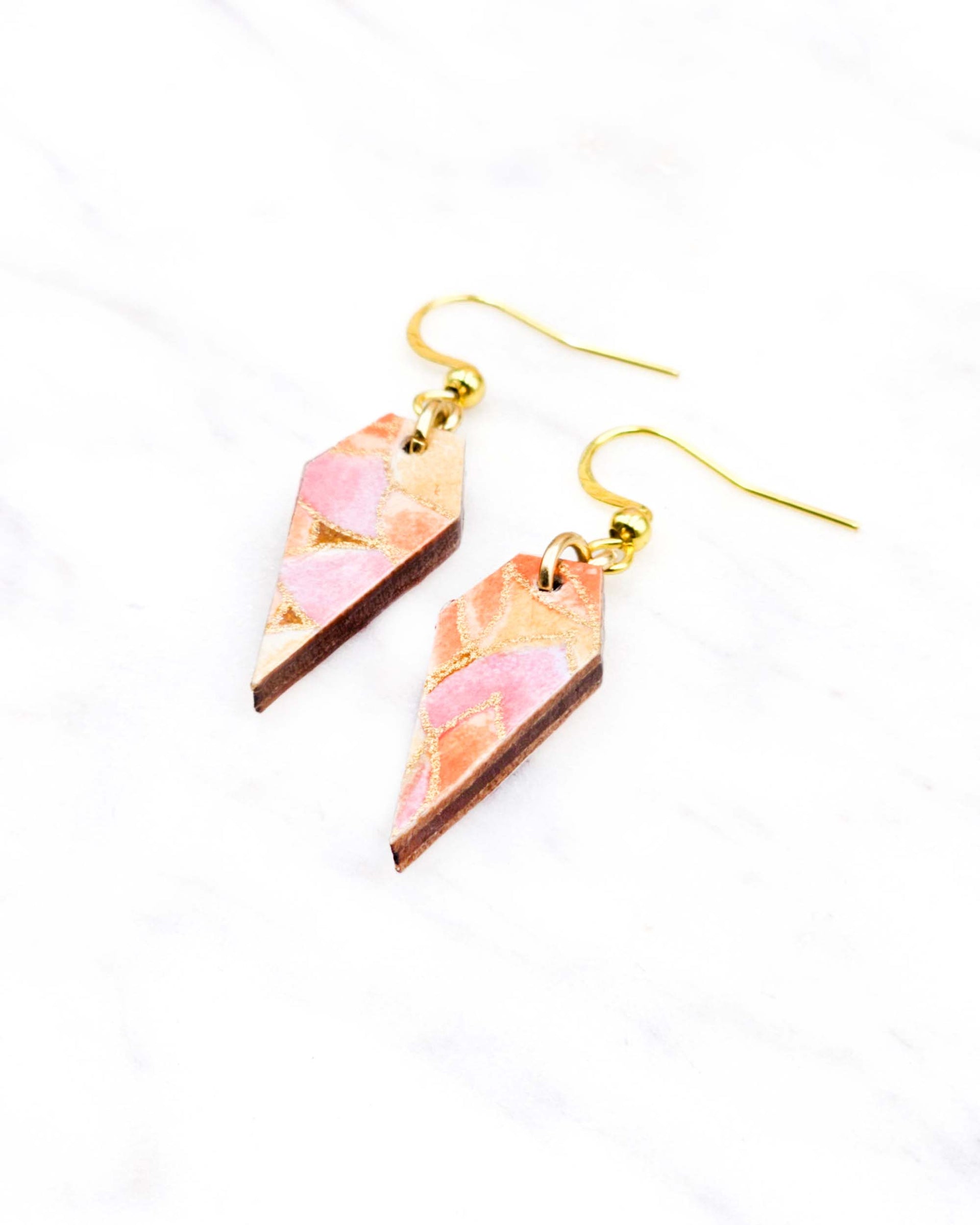 These earrings are made out of birch wood and decorated with Japanese chiyogami paper. They're extremely light weight and are double-sided just in case you have short hair or have your hair up.