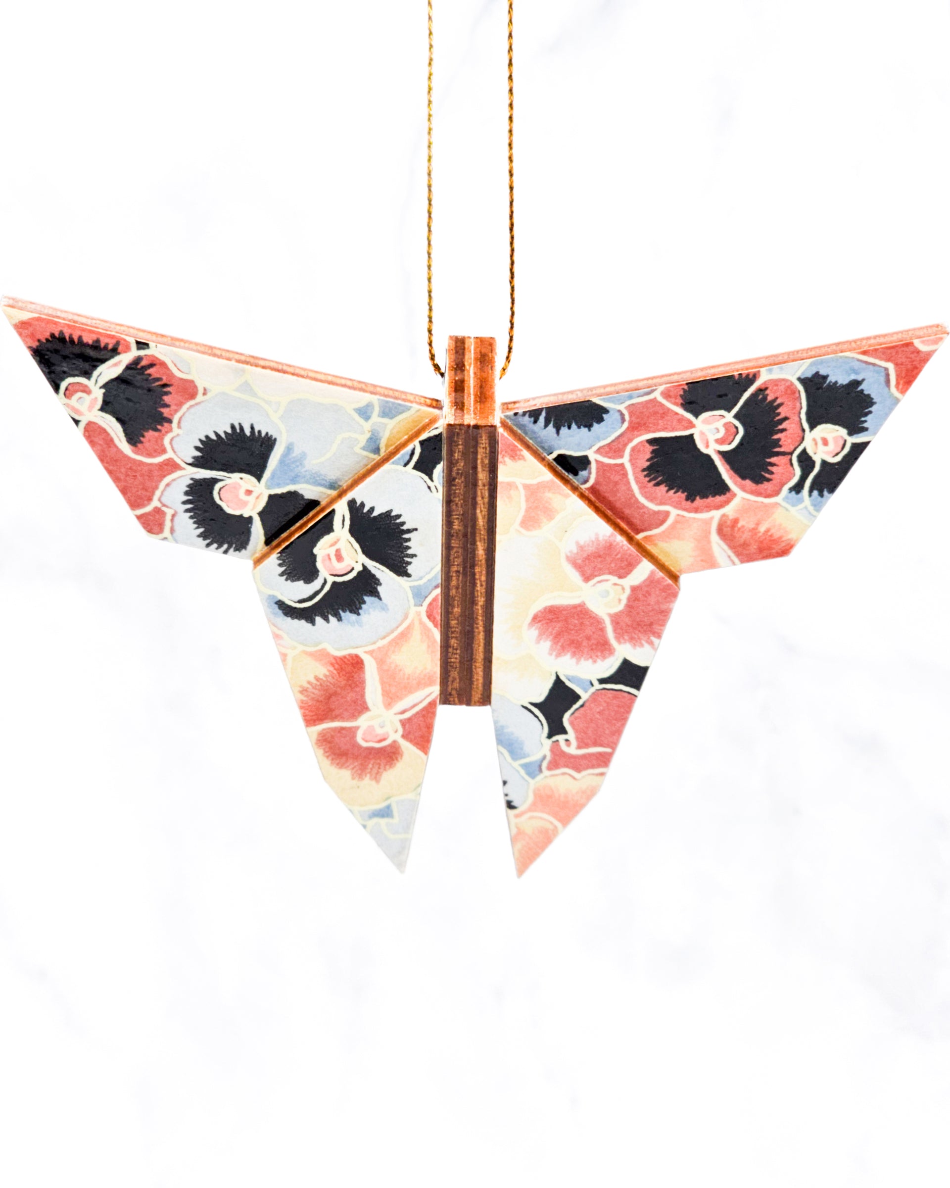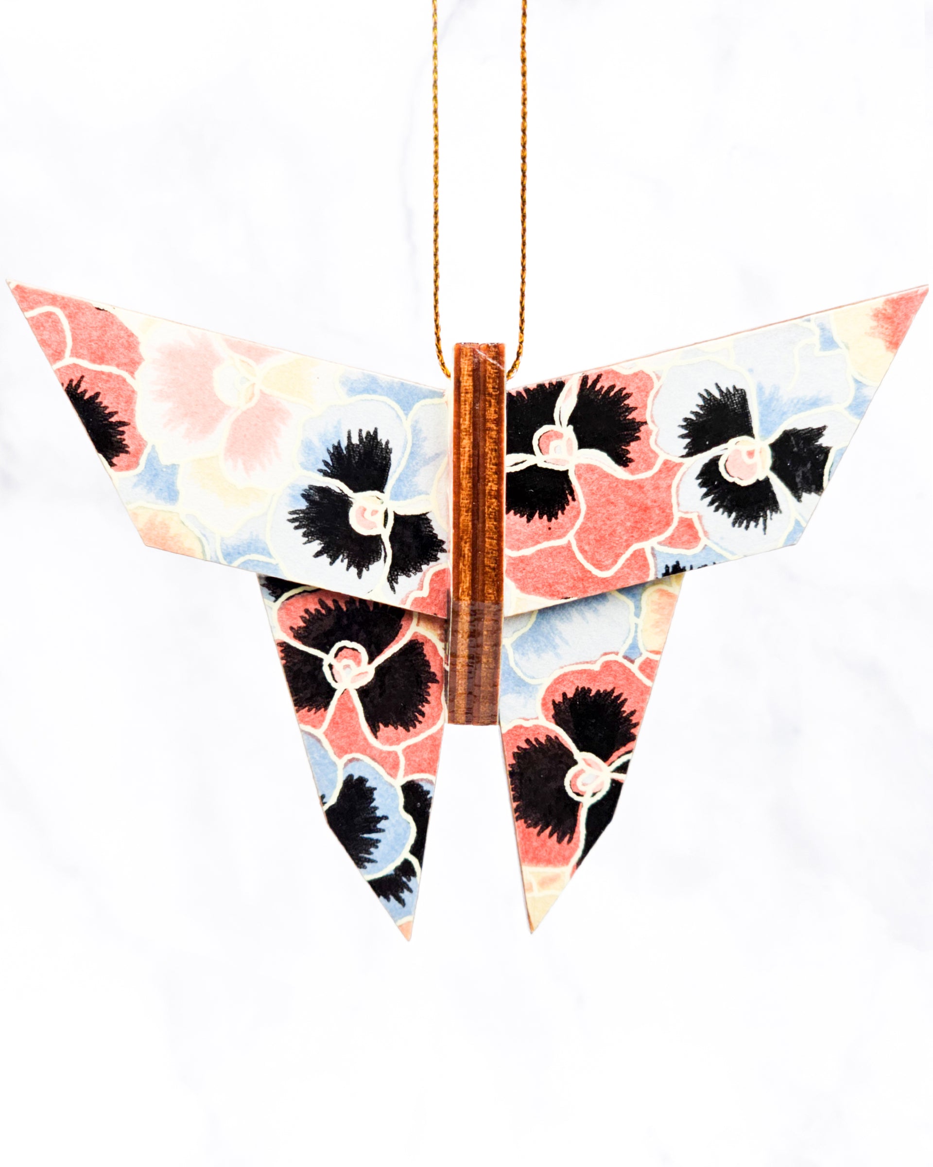 Wooden Origami Butterfly - Blue & Brown Pansies