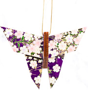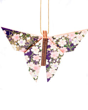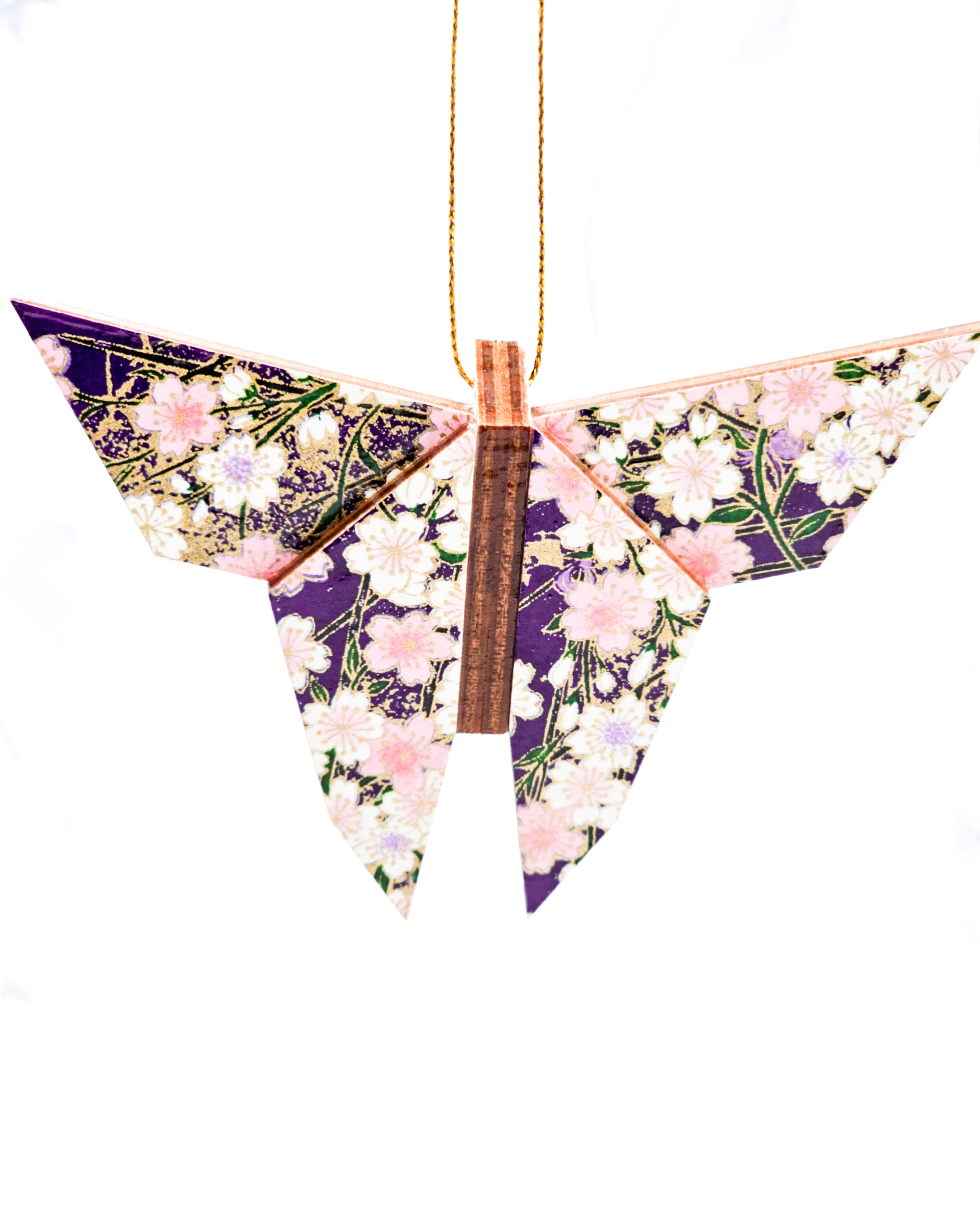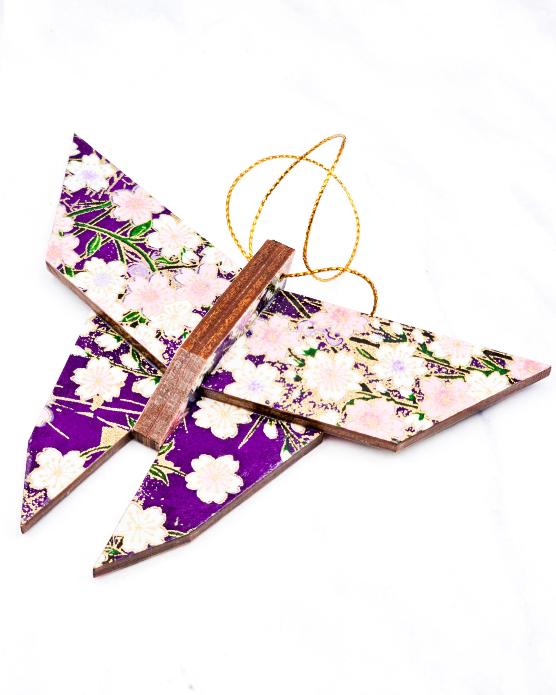 Wooden Origami Butterfly - Cherry Blossoms on Purple