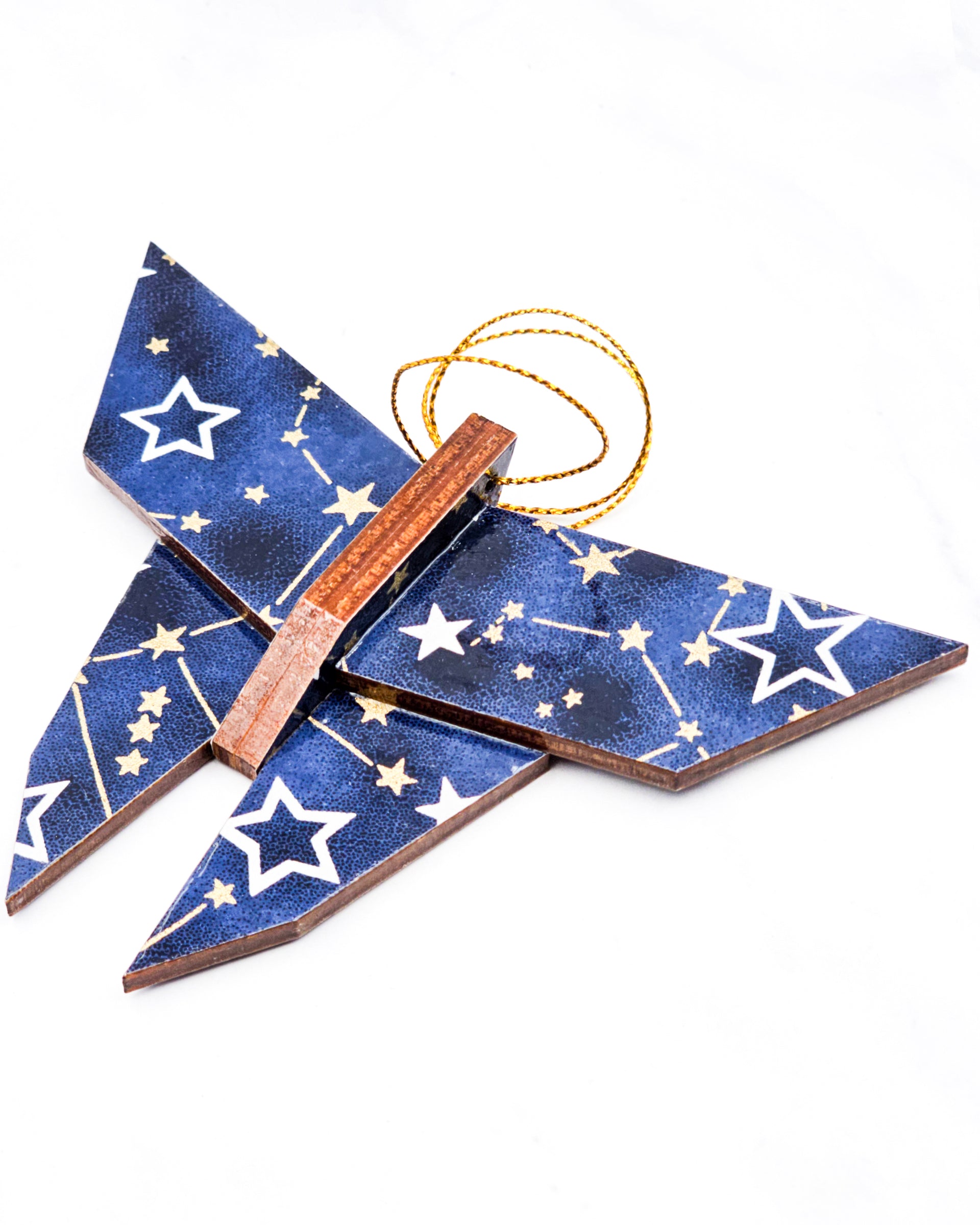 Wooden Origami Butterfly - Stars & Constellations on Blue