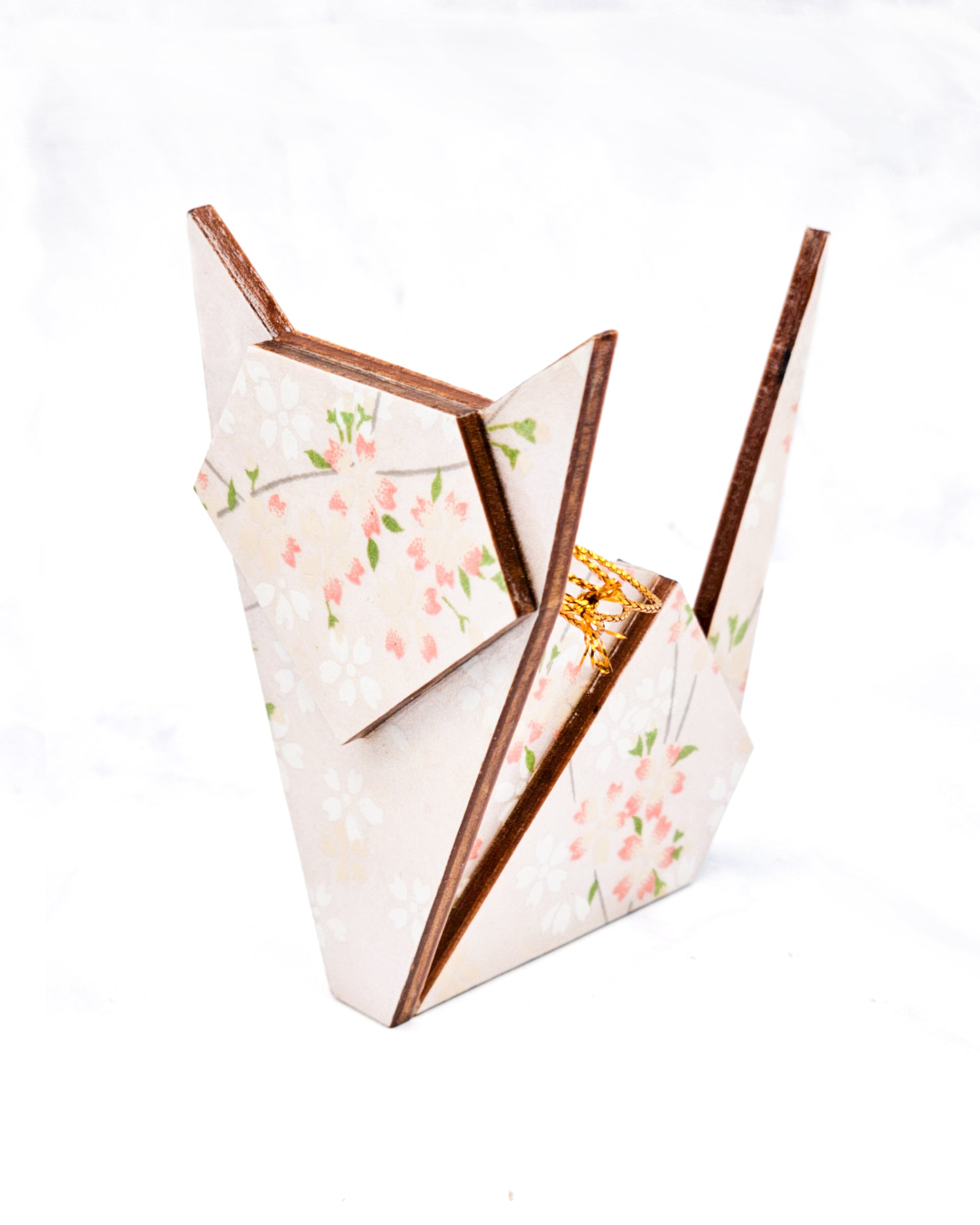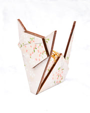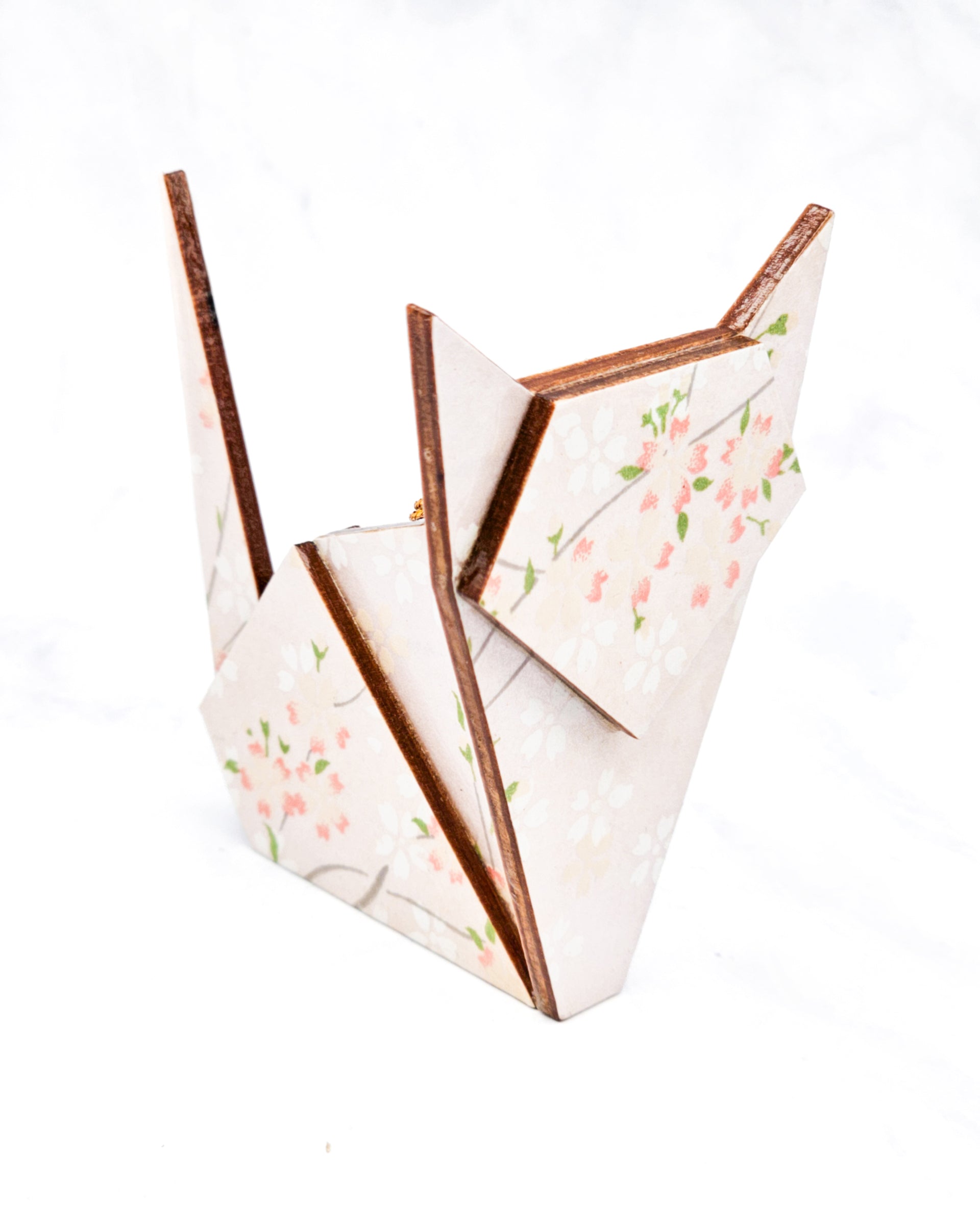 Wooden Origami Cat - Cherry Blossoms on Pearlescent Pink