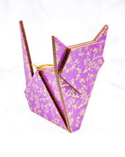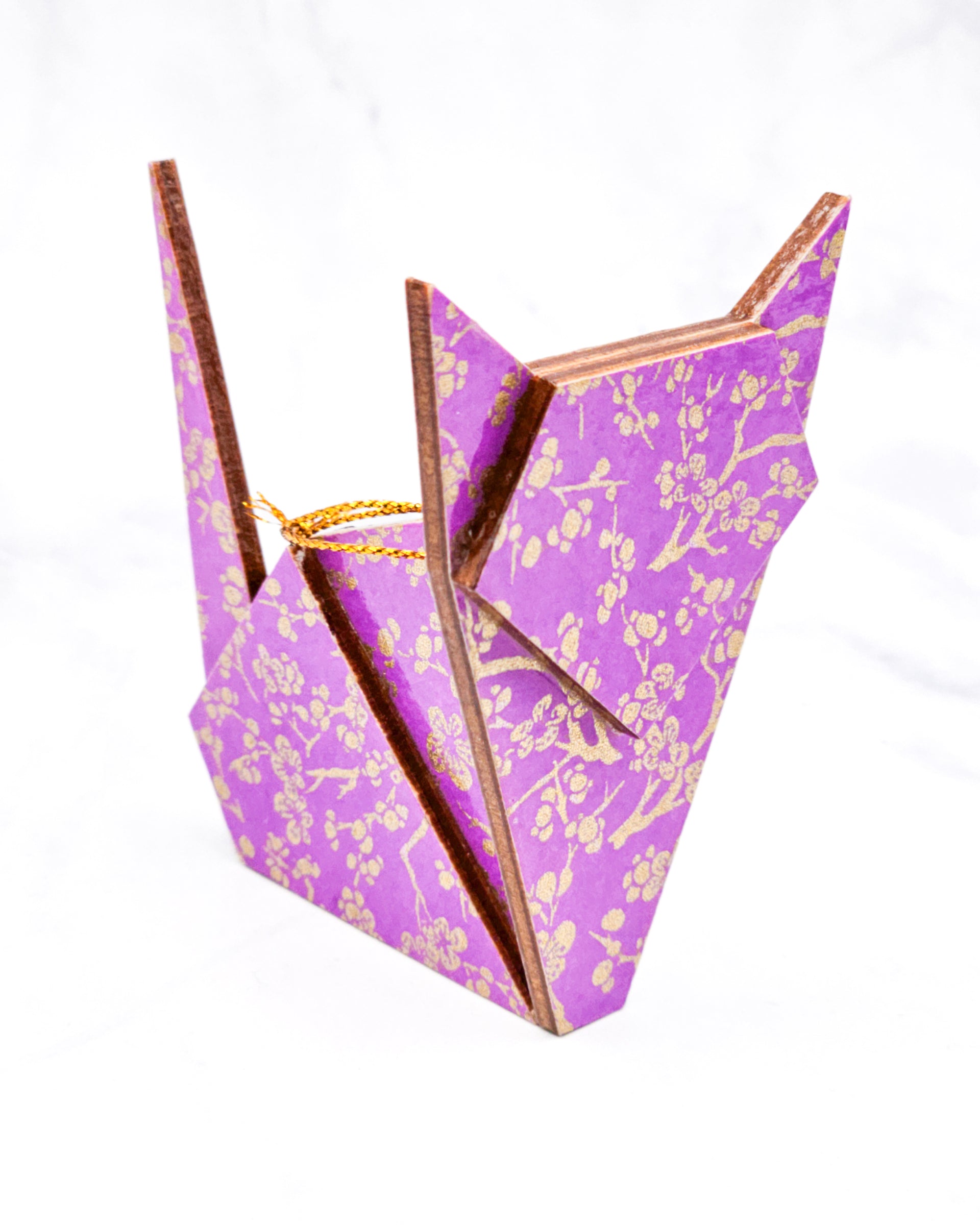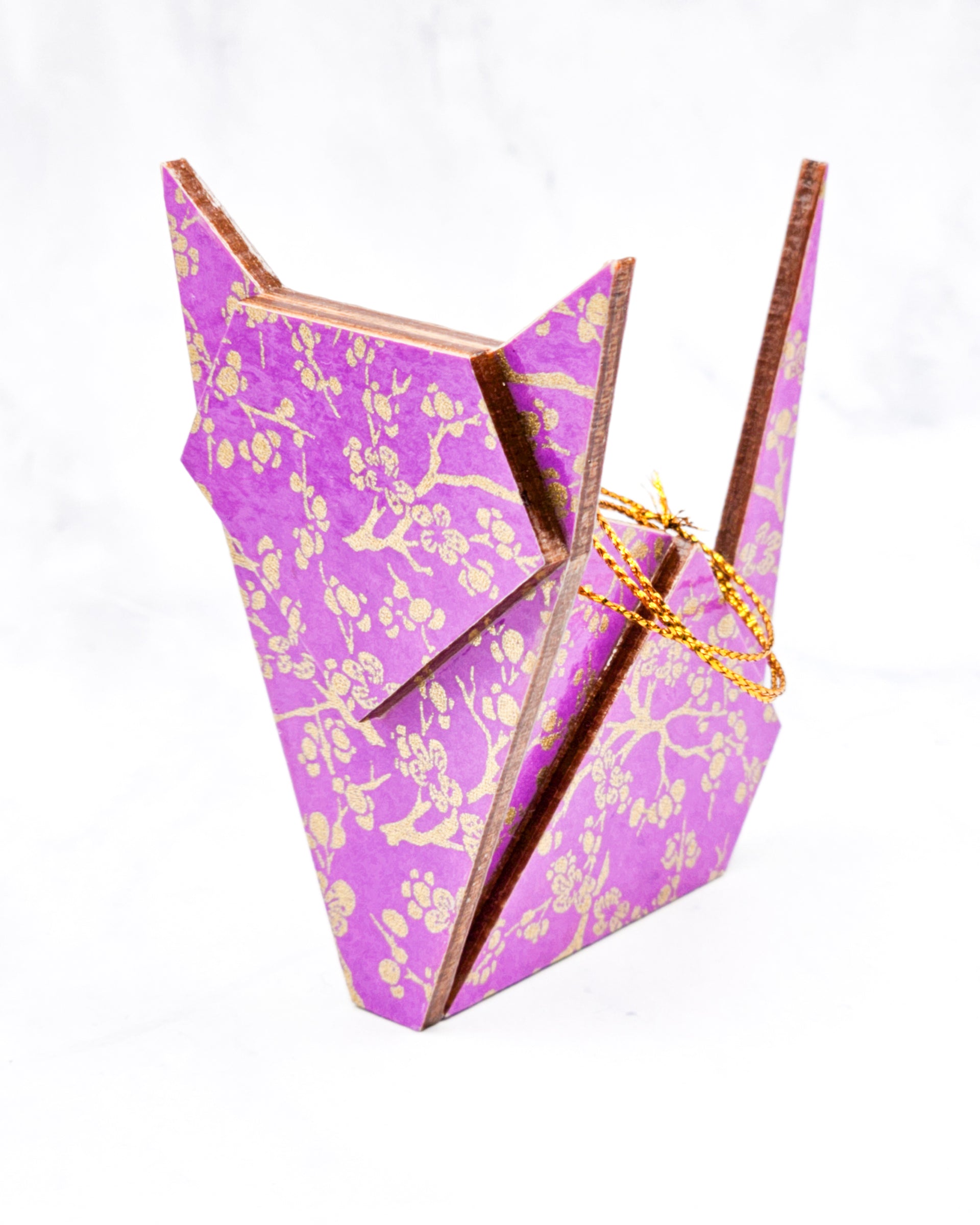 Wooden Origami Cat - Gold Plum Blossoms on Purple