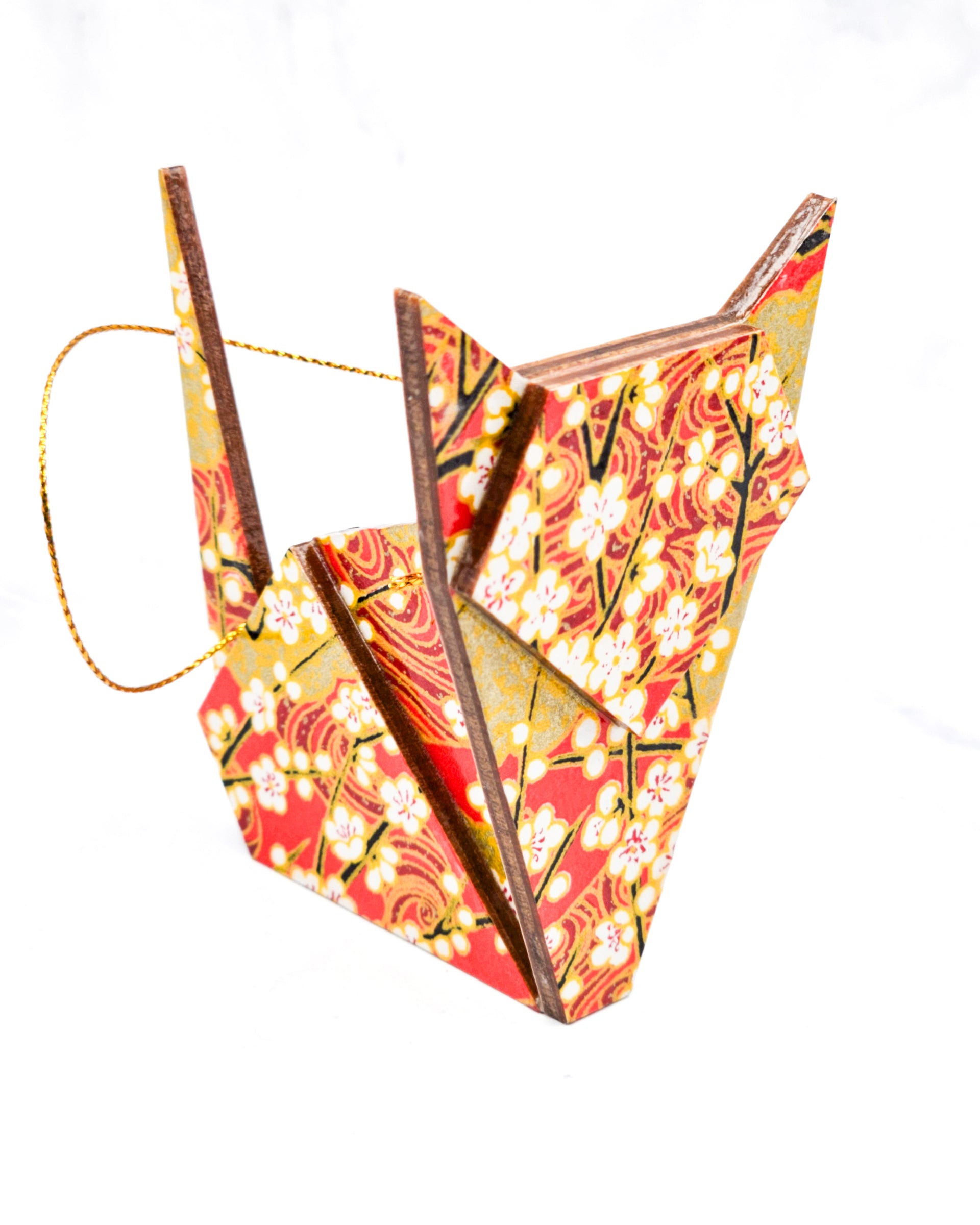These light-weight origami cats are handmade from laser-cut wood and Japanese chiyogami paper. They can hang as an ornament or be displayed on a desk/shelf. They are well sealed by hand for durability. Even though they are water resistant due to the many layers of sealant, please do not soak them in water or display outdoors. Displaying in areas with prolonged direct sun exposure may cause the colors to fade over time. The cats are fragile and delicate parts may break if dropped on a hard surface, so please handle with care. These cats will last for a long time with proper care.