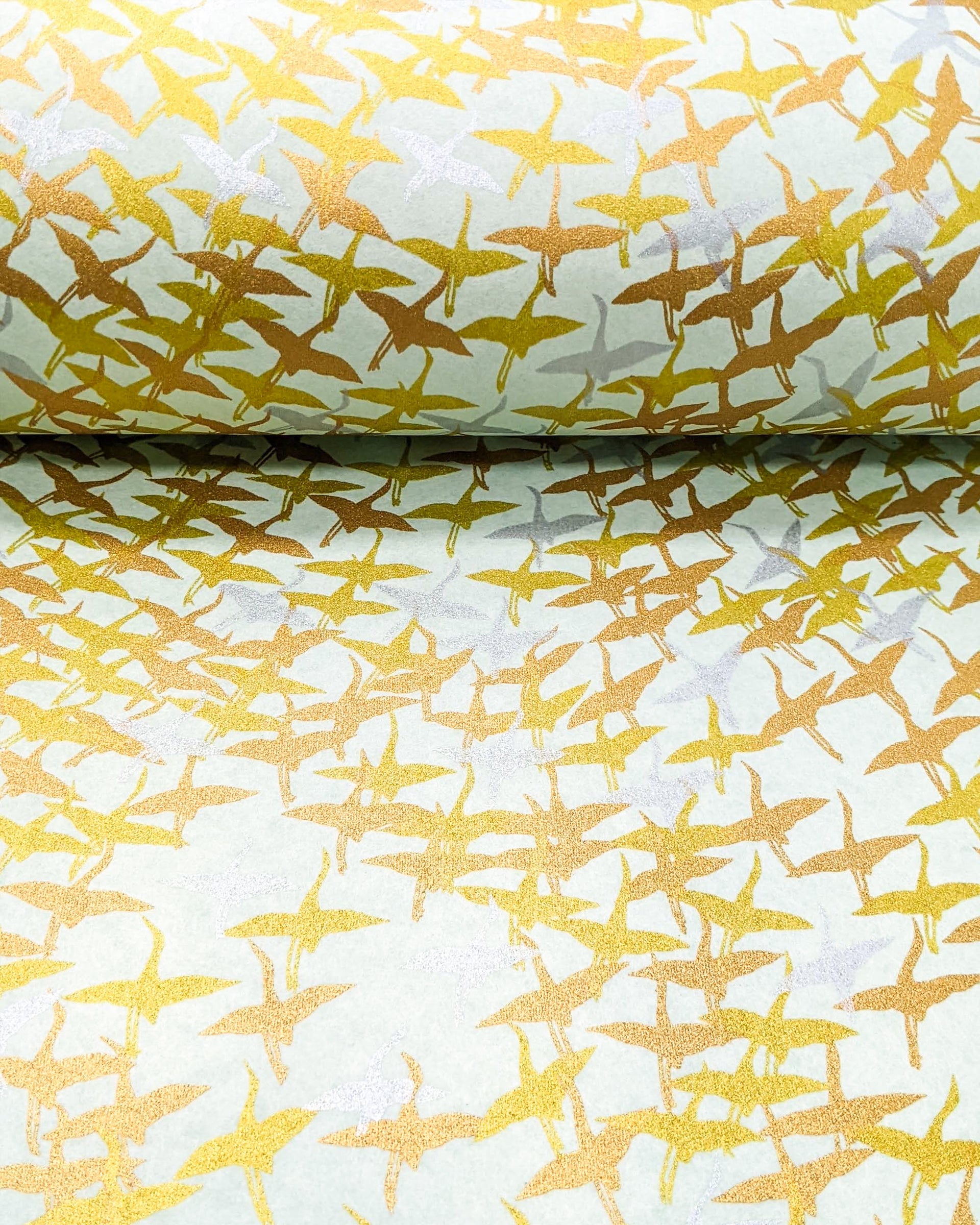 0927 Gold & Silver Cranes on Turquoise