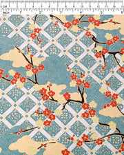 0881 Checkered Plum Blossom Branches on Blue
