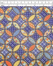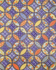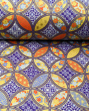 Main Colors: Blue, Orange, Yellow, Metallic Gold