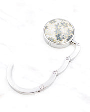 Tabletop bag hangers are perfect for keeping your bag or purse off of the dirty floor and the back of your chair where it's out of your sight.