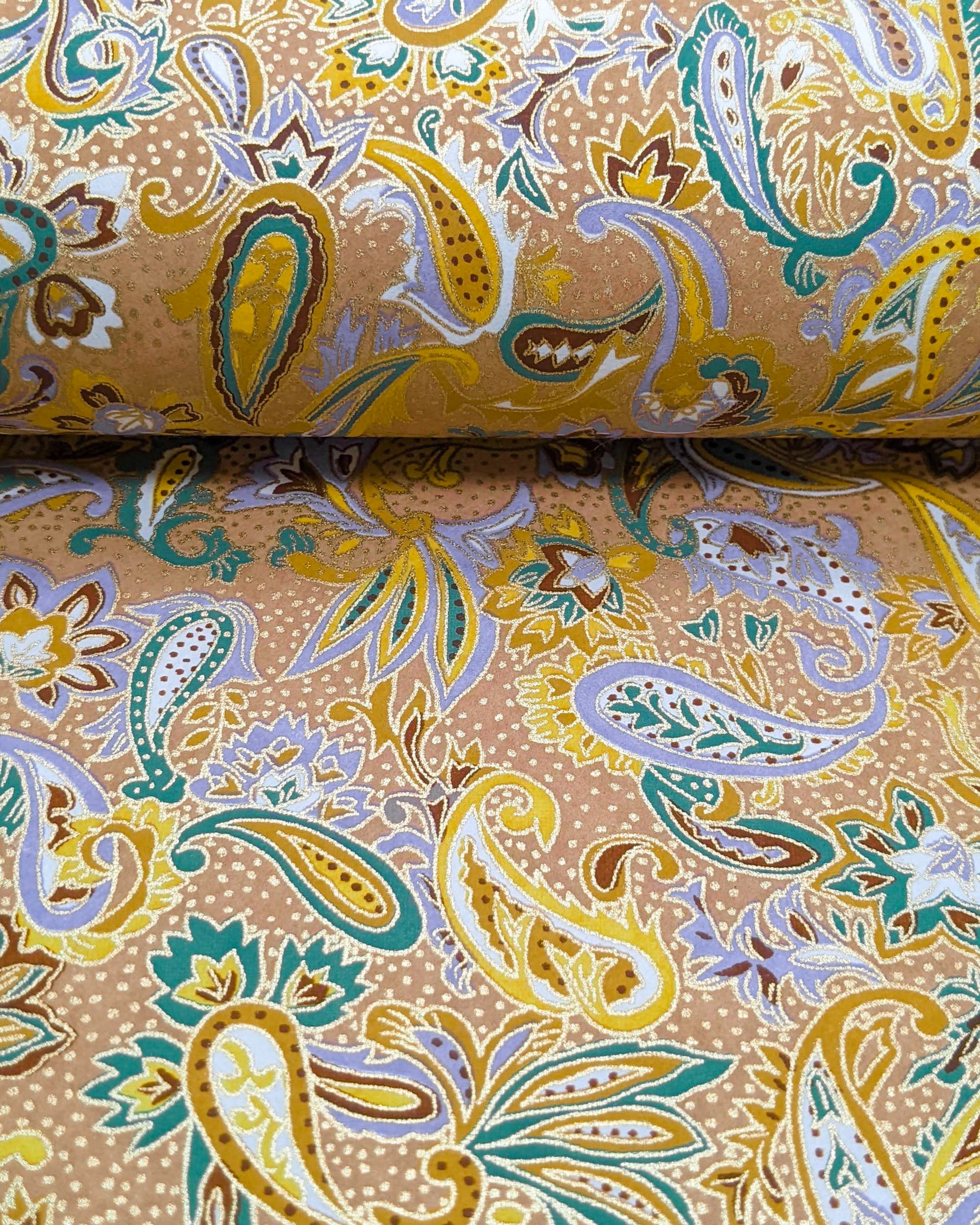 Main Colors: Brown, Purple, Green, Metallic Gold
